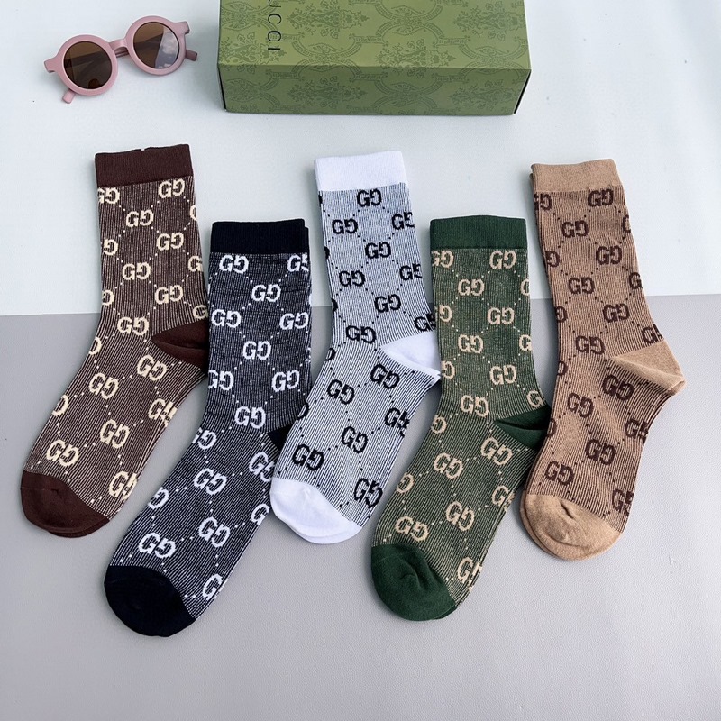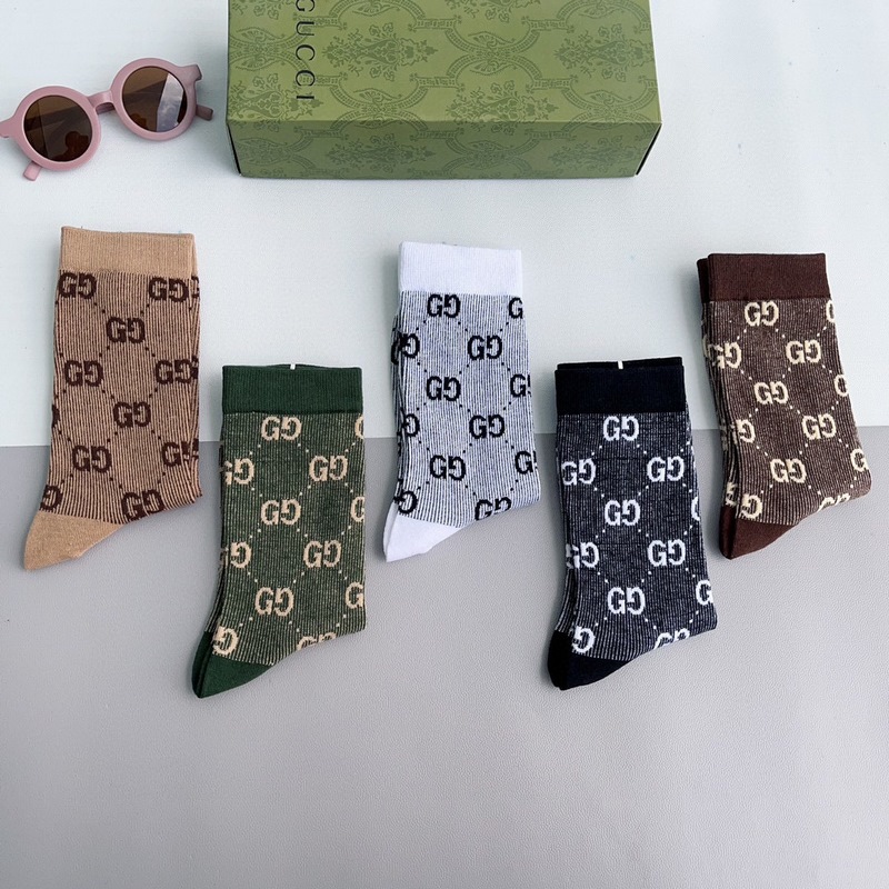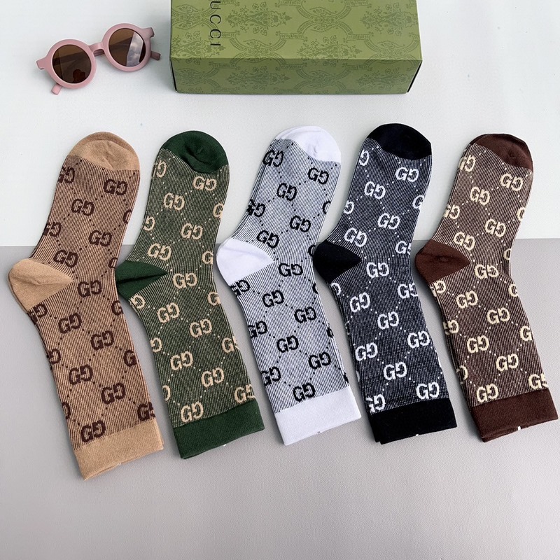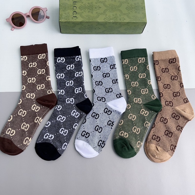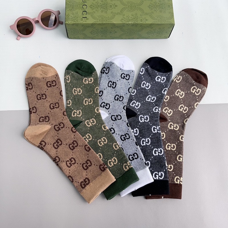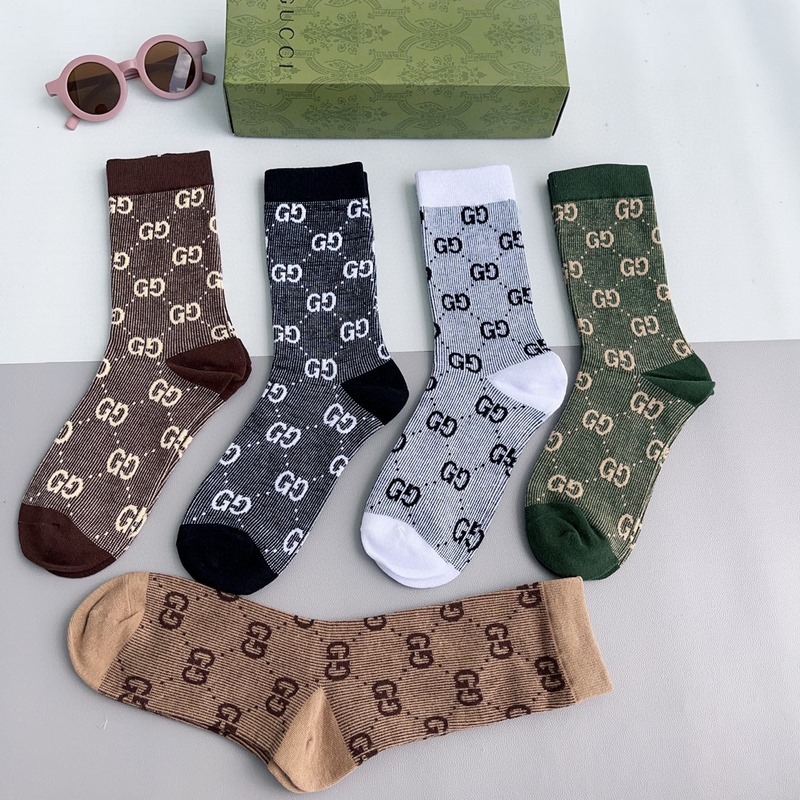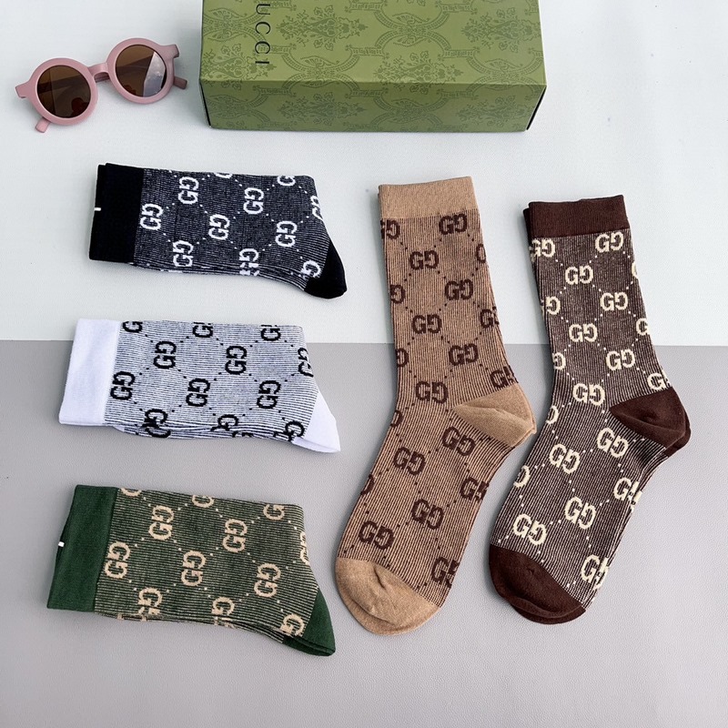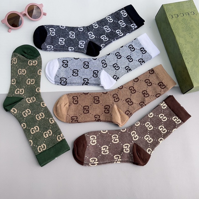 GUCCI 2024 uudet vasikasukat kaksoisneulainen kaksoisreittikangas, suosittu G-kuvio, vastasynkronoidut keskipitkät sukat, iso tuotemerkki, trendikkäillä ihmisillä on oltava, erittäin helppo sovittaa