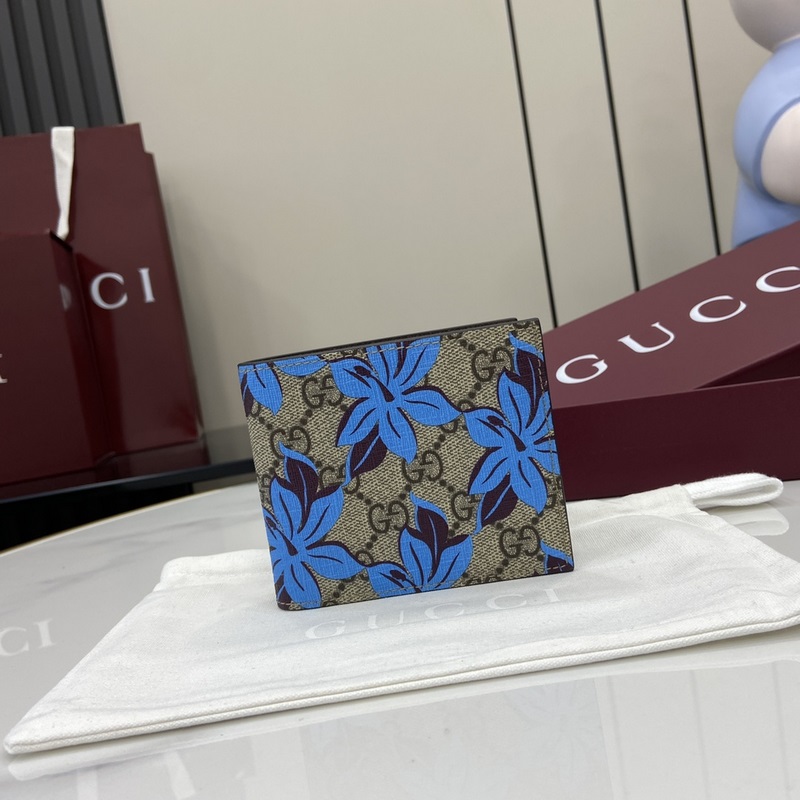 Uusi tulokas Ikoninen GG Supreme -kangas näyttää upealta Pre-Fall 2025 -kokoelmassa tulkitsemalla kukkaprintin uudelleen sinisenä. Tämä beige ja tummanruskea kaksiosainen lompakko on koristeltu modernilla kukkakuviolla ja GG-logolla.