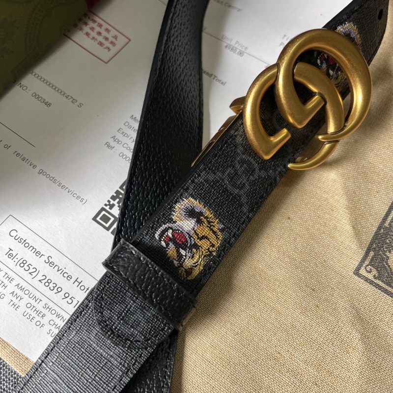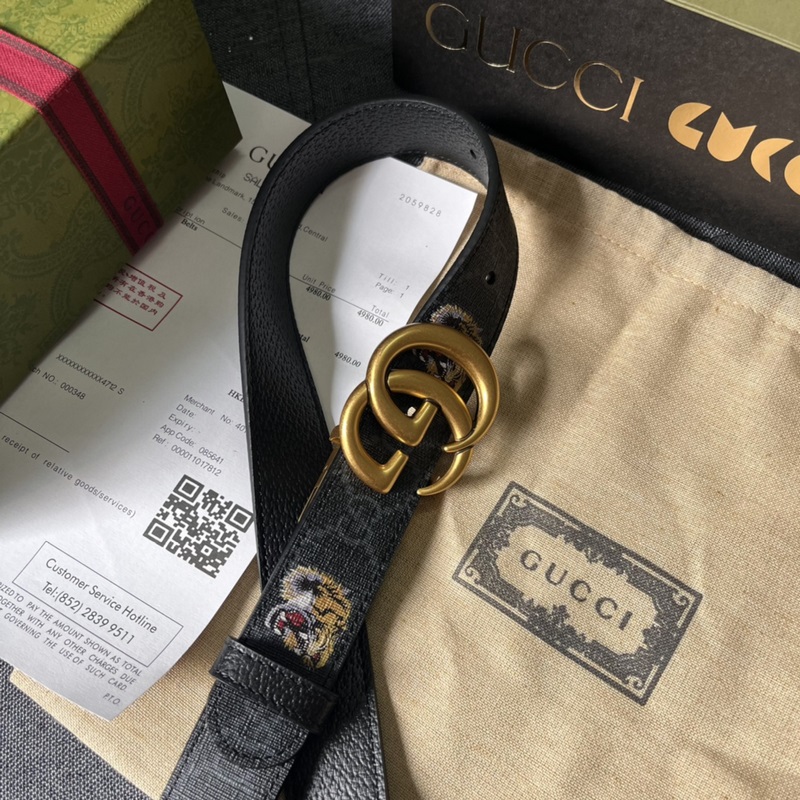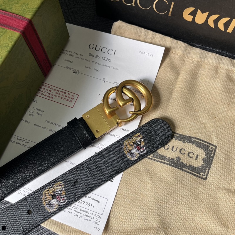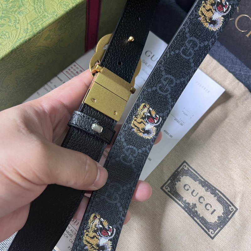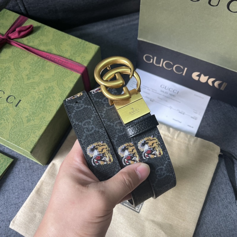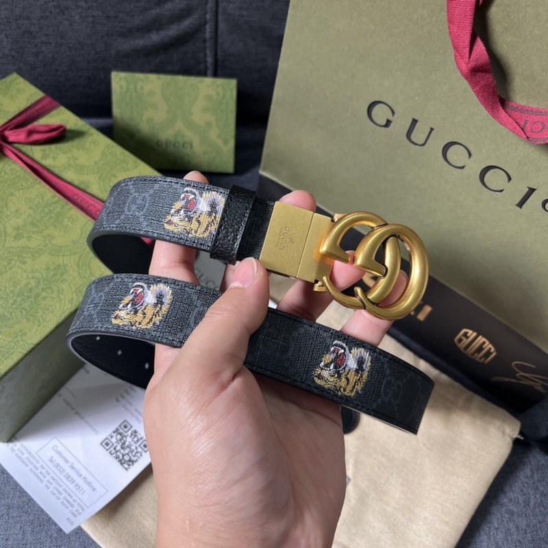 Gucci, 3,0 cm leveä, uusi kaksipuolinen nahkavyö, jossa painatuksia ja siannahkaa. Lisävarusteet johtavat edelleen Guccin uuden sarjan trendiä ainutlaatuisilla ja rikkailla yksityiskohdilla ja käytännöllisillä toiminnoilla, jotka tulkitsevat erinomaista laatua. Hyvin tunnistettava kaksois-G-solkielementti tekee koko vyöstä viehättävämmän