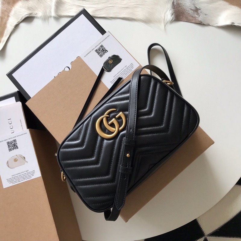 Gucci-kameralaukku, mallinumero 447632, iso koko, tyydyttää varmasti sinua. Valmistettu lehmännahasta ja lampaannahasta, se tuntuu pehmeältä ja sileältä, kaksinkertainen G-solki, retro ja leikkisä, ensimmäinen valinta kevääseen ja kesään. Musta on voittamaton ja monipuolinen. Koko on myös suosittu. Siihen mahtuu helposti matkapuhelimet, huulipunat, puuteri jne. Koko: 24/7/13cm