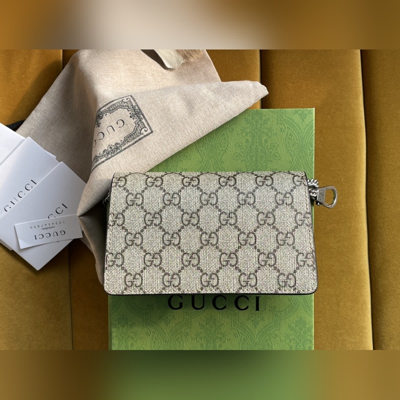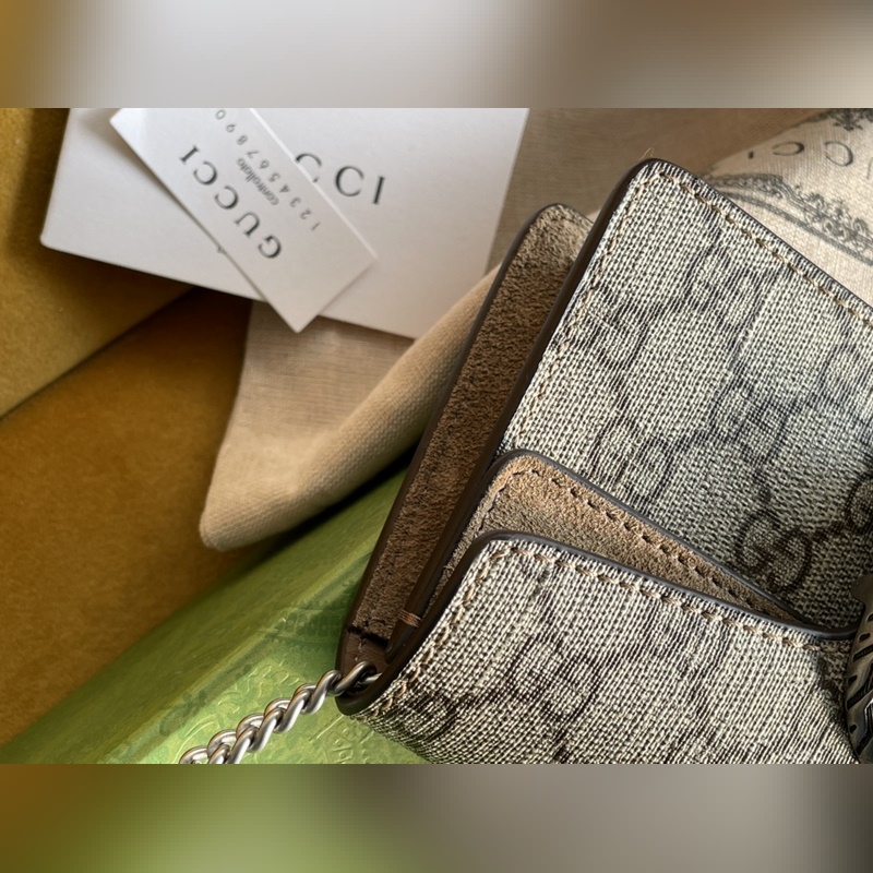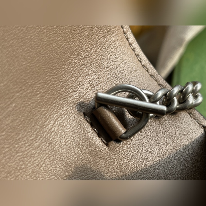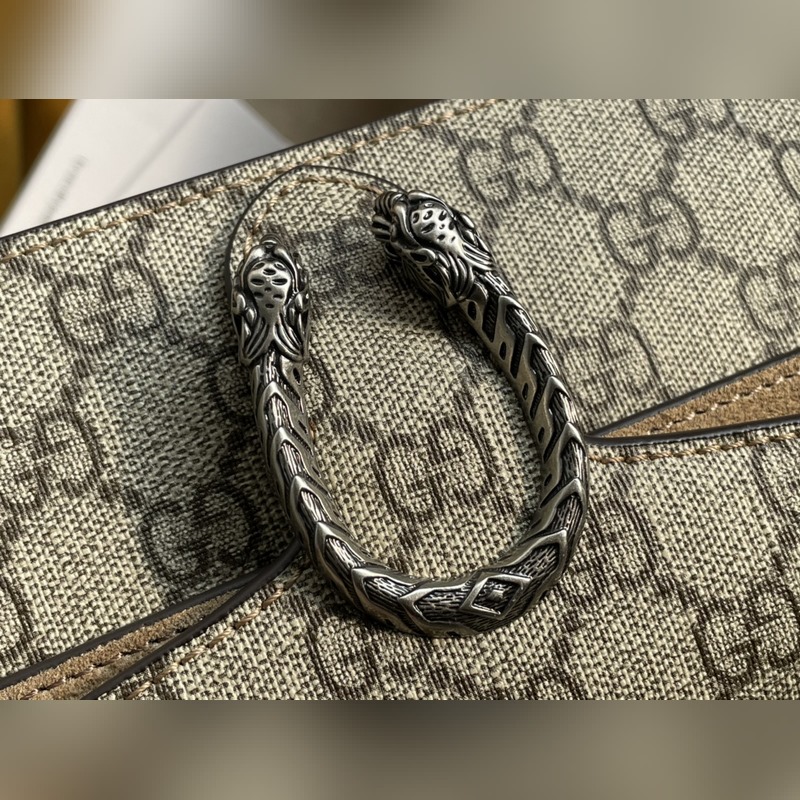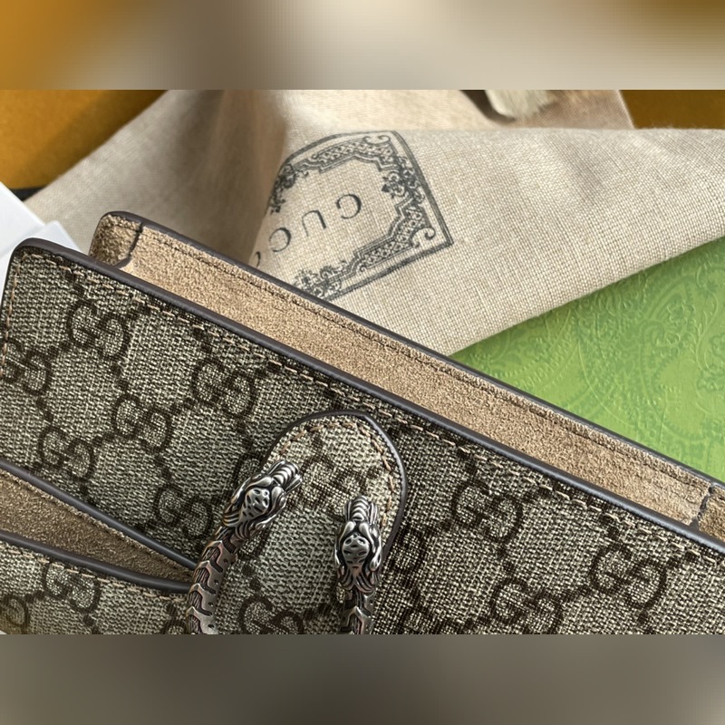 Mallinumero: 476432 Dionysus-laukku on valmistettu aidosta italialaisesta päällystetystä kankaasta vaalealla kamelin mokkanahalla, aidolla retrohopealla metallilla, tiikeripään soljen koristelu, puoliksi käsin ommeltu Litai, aito laatu liukuva ketjun hihnan koko: 16,5*10*4,5cm, alkuperäisessä pakkauksessa