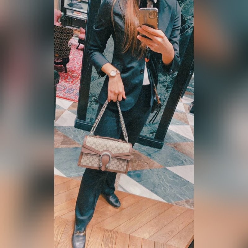 Gucci laukku 621512 Italia 2020 Dionysus laukku kudottu tiikeripää kannussolki PVC alkuperäisellä nahalla. Lisää kiiltoa tähän rakenteelliseen olkalaukkuun. Liukuvassa ketjulaukussa on useita kantotapoja, ja se voidaan vapaasti muuttaa olkapään ja käden välillä. Mokkavuorattu tasku on vuorattu korkealaatuisella GG Supreme keinonahalla