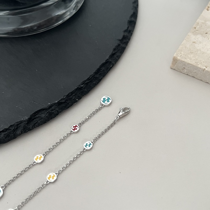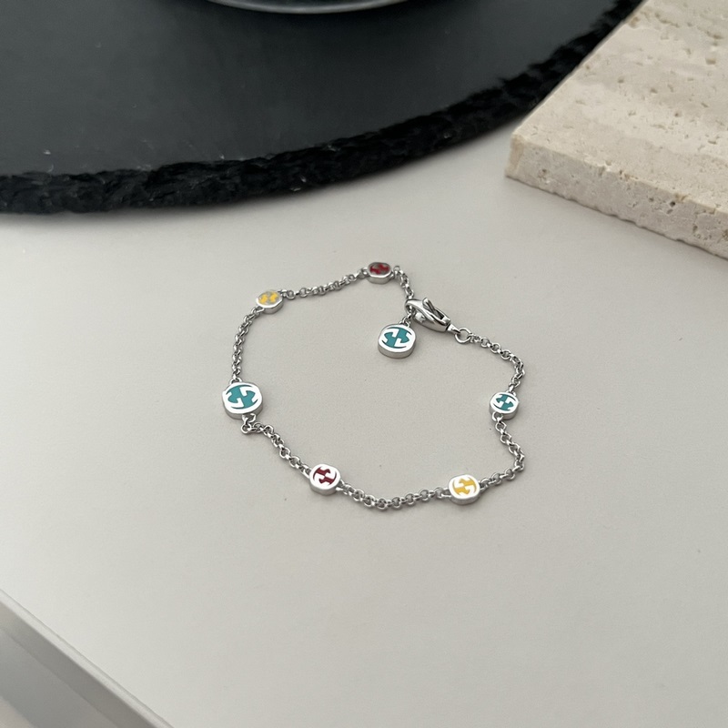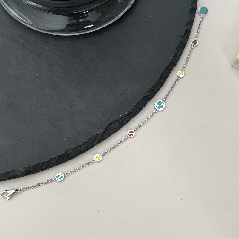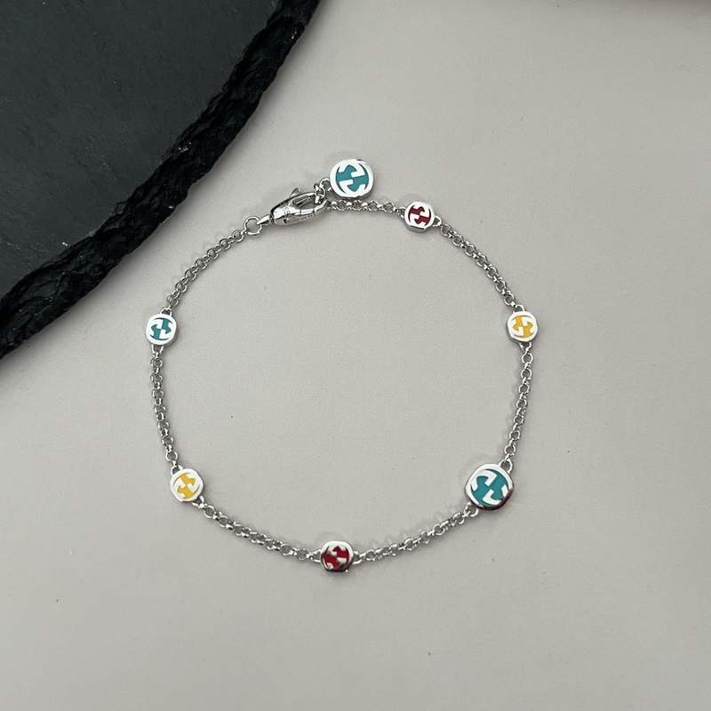 Gucci 925 sterlinghopeaa lukittava kaksinkertainen G värikäs emalirannekoru