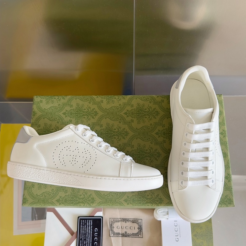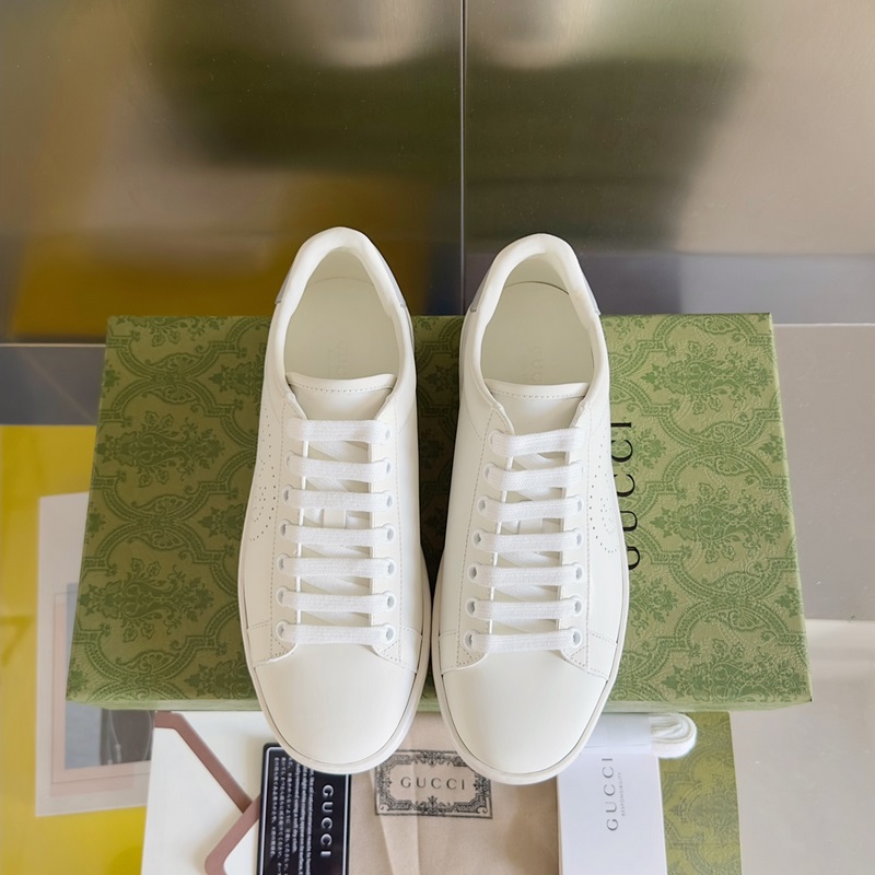 Gucci G:n klassinen Ace-sarja, kirjailtu pienet mehiläiset, pienet valkoiset kengät, parityyli, nauhat, rakkaus, vapaa-ajan urheilukengät, lautakengät