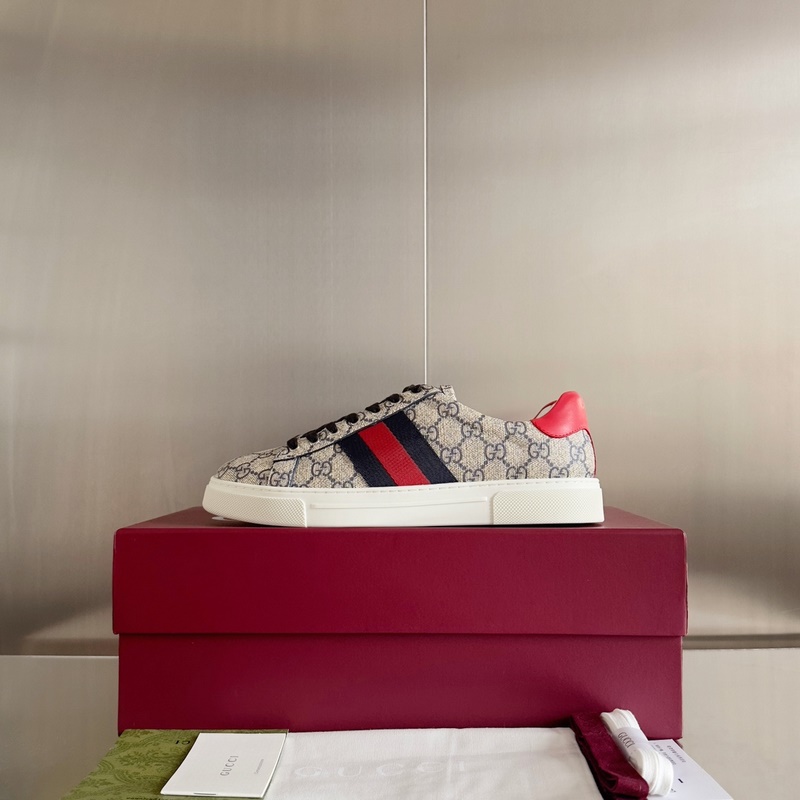 Alkuperäinen hankinta, kehitys ja tuotanto Guccin Ace-urheilujalkineet ovat lanseerauksestaan lähtien jatkaneet brändin tarinaa ja luoneet lippulaivatuotteita kekseliäästi. Uusi sarja esittelee erottuvan matalavarren muotoilun, joka on yhdistetty ainutlaatuisiin yksityiskohtiin ja tulkitsee urheilukenkäversion uudelleen. Nauhat on kiinnitetty “ACE”-metallitarralla, ja paksunnettu rakenne on muotoiltu hienosti luomaan terävän kengän muodon. Guccin klassinen punainen ja vihreä raidallinen nauha lisää koko designin viehätystä.
