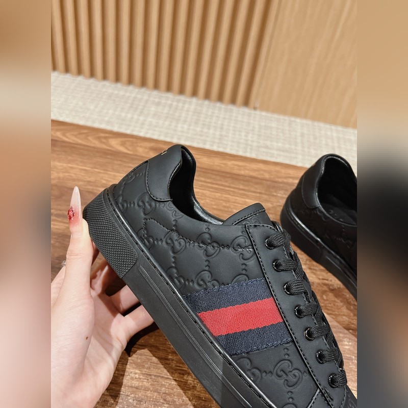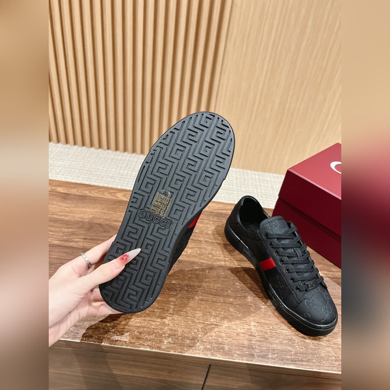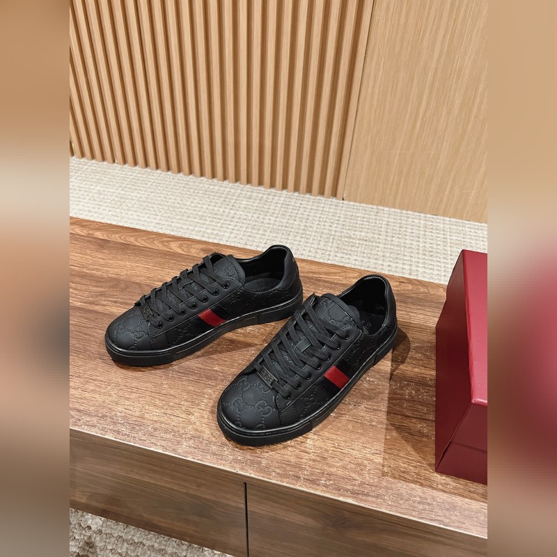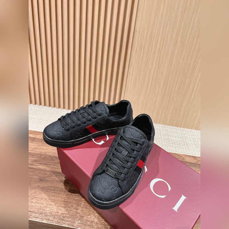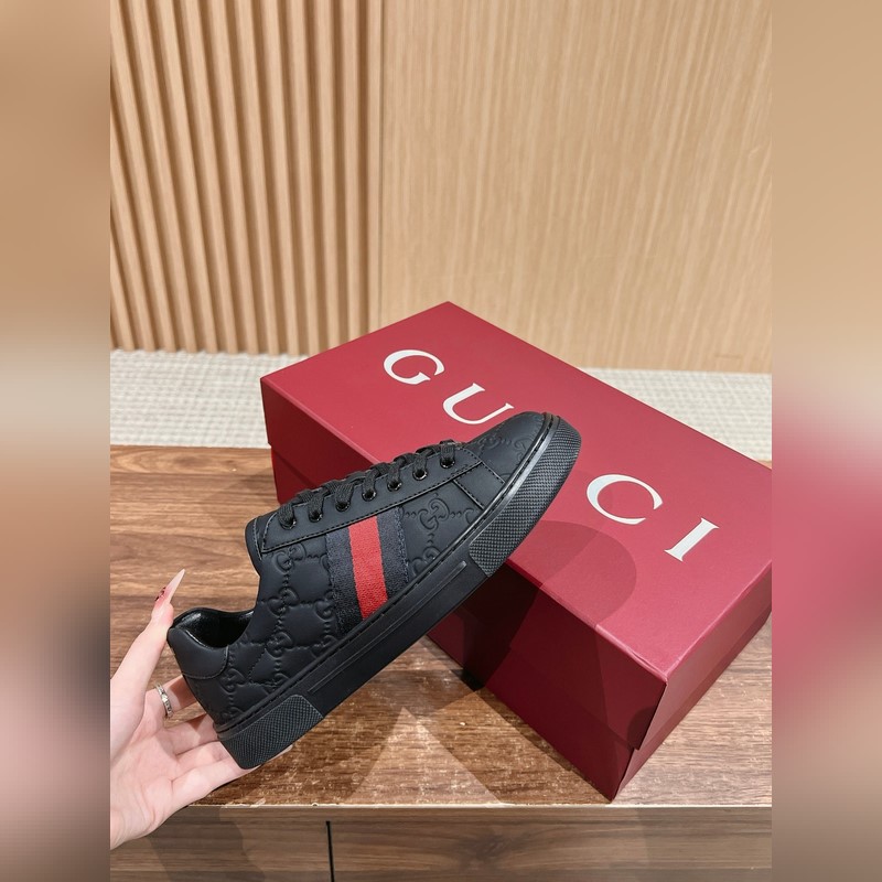 Ace-sarjan urheilujalkineet jatkavat brändin tarinaa, ja ammattitaito luo päätuotteet. Uusi sarja esittelee erottuvan matalavarren muotoilun, joka on yhdistetty ainutlaatuisiin yksityiskohtiin ja tulkitsee urheilukenkäversion uudelleen. Nauhat on koristeltu “ACE”-metallimerkillä, ja paksunnettu rakenne on muotoiltu hienosti luomaan terävän kengän muodon. Guccin klassinen punainen ja vihreä raidallinen nauha lisää charmia koko designiin.