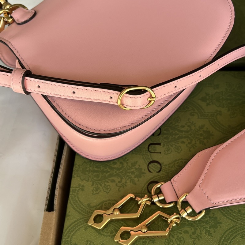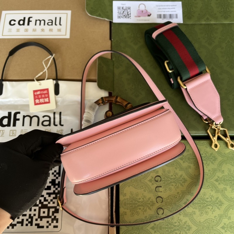 Guccin “Aria-Fashion Aria” -sarjassa käytetään moderneja tekniikoita klassisten elementtien uudelleentulkintaan. Bambu on yksi Guccin klassisista elementeistä, ja se on esiintynyt brändin eri sarjoissa 1940-luvulta lähtien. Yli 80 vuoden kehityksen ja kehityksen jälkeen tämä klassinen elementti on sekoitettu ja uusittu tähän pieneen käsilaukkuun. Käsilaukun mukana tulee myös kaksi vaihdettavaa olkahihnaa. Sileä nahkamateriaali osoittaa eleganttia ja klassista luonnetta, kun taas raidallinen verkkoolkahihna korostaa vahvaa brändikonnotaatiota