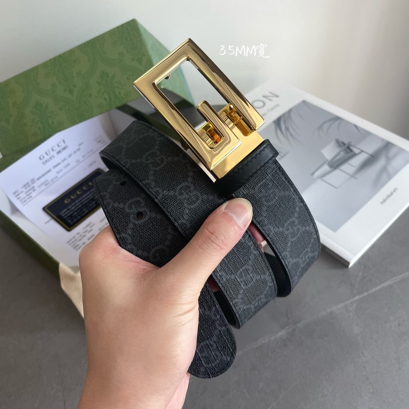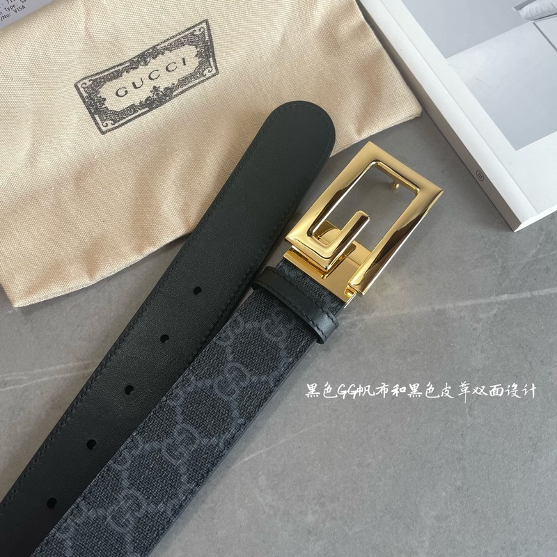 Guccin uusinta mustaa GG Supreme -kanvaa ja mustaa nahkaa voidaan käyttää molemmilla puolilla. Leveys 3,5 cm Square G -solki