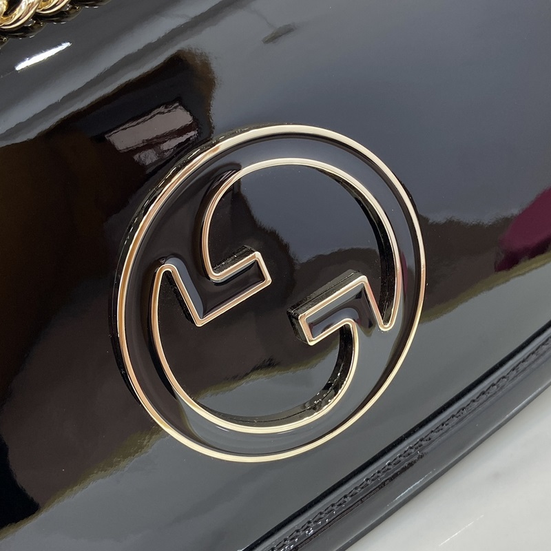 Uusi Gucci Blondie -sarjan uusia käsilaukkuja koristaa merkin klassinen logo, joka debytoi 1970-luvun alussa. Se yhdistää perinnön viehätysvoiman taitavasti nykyaikaiseen tyyliin ja tulkitsee täydellisesti merkin klassista muotoilua ja modernia olemusta. Tämä pieni olkalaukku on valmistettu Guccin kiiltonahasta, jossa on emaloitu pyöreä logo. Sen mukana tulee kullanvärinen ketjun olkahihna ja nahkainen olkahihna, joita voidaan helposti käyttää olkapäällä tai poikkivartalolla.