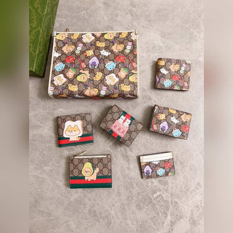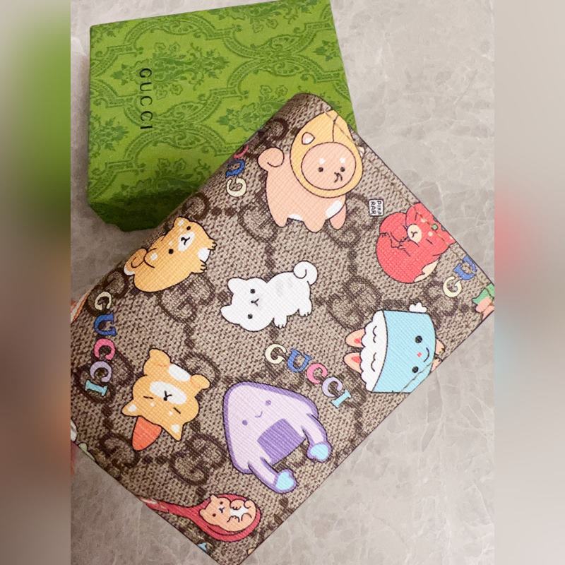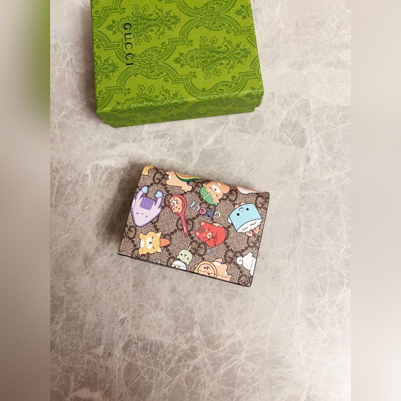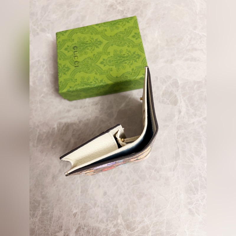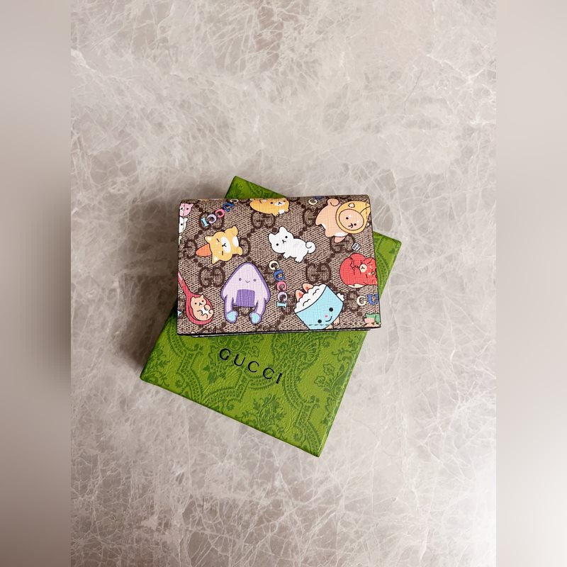 Guccin uusin naamiointi sarjakuvakorttikotelo ~ Valkoinen sianjyväinen nahkalompakko, hieno ja värikäs