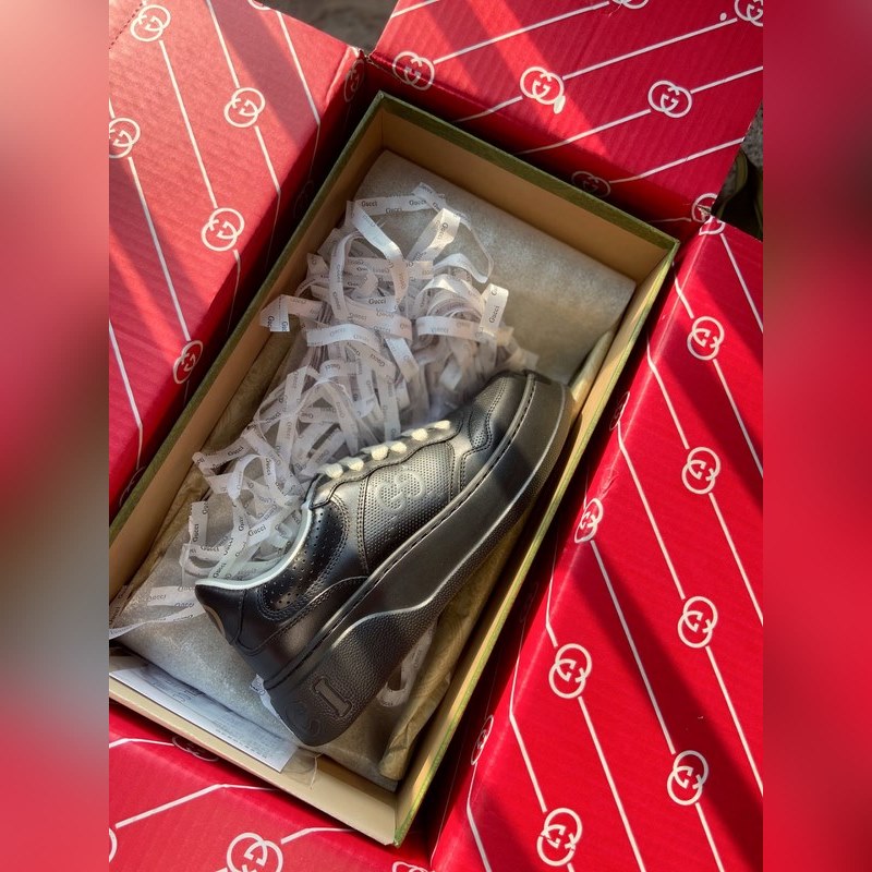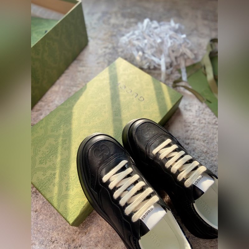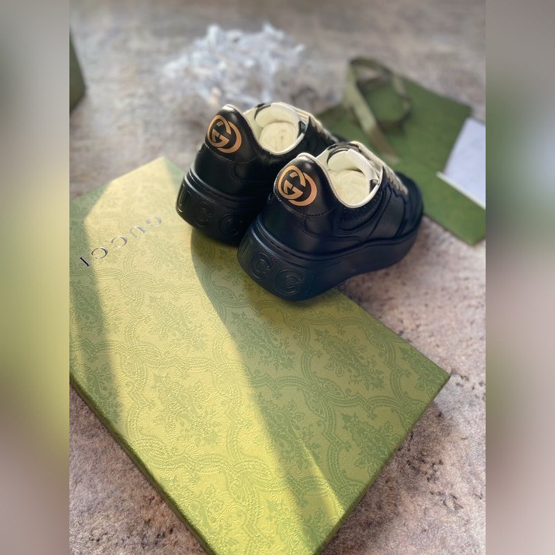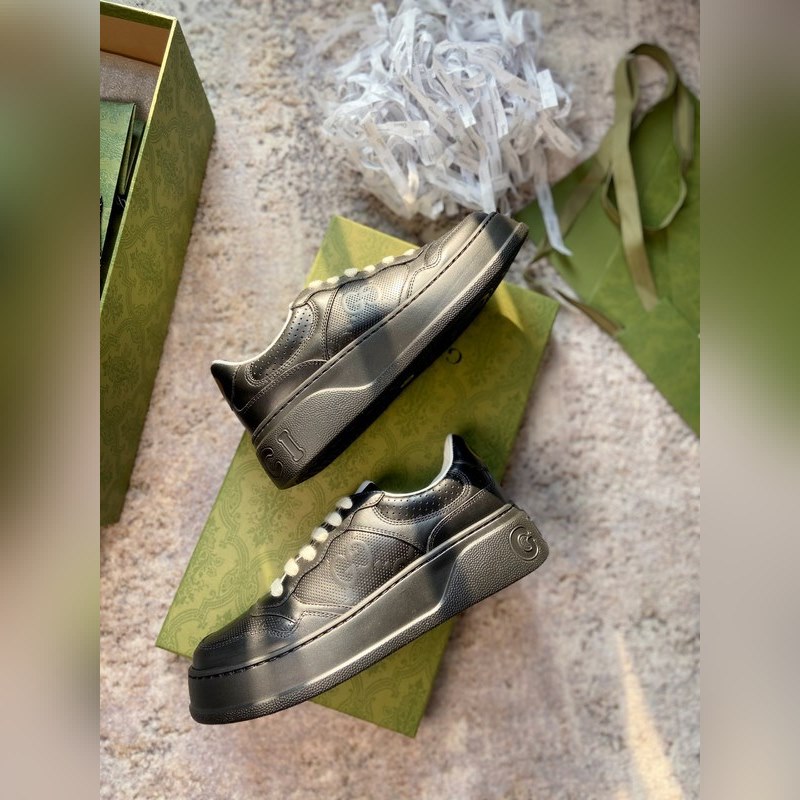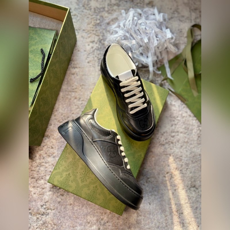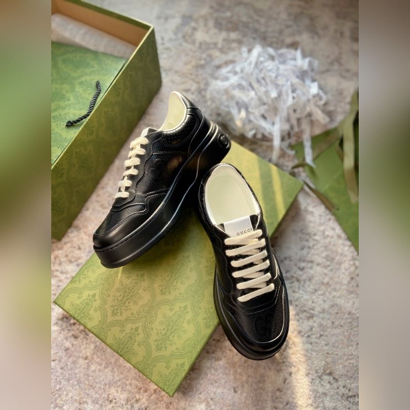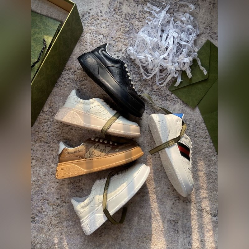 Syksyllä ja talvella Gucci Couples Uudet Chunky B-sarjan lenkkarit – Intohimoiset retrotunnelmat, sama tyyli mies- ja naispareille, pakollinen romanttiselle matkalle alkutalvella, paksu pohja, joka muistuttaa klassisten valkoisten kenkien päivitettyä versiota, alkuperäinen tilaustyönä tehty lehmännahkakangas (klassinen vanha kukkakangas, alkuperäinen logo, rei’itys, Gucci on alkuperäinen GG-logo kantapäässä, 4 cm korotettu paksu pohja