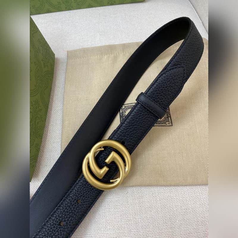 Gucci klassinen musta Togo-litsikuvio, vuorattu ensimmäisen kerroksen vasikannahalla mustalla pohjalla, retro-pyöreä G-solki