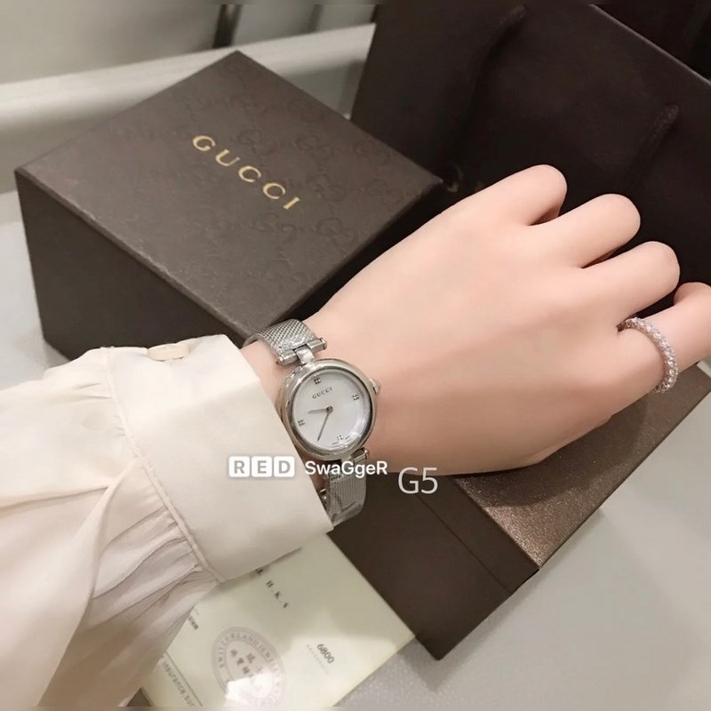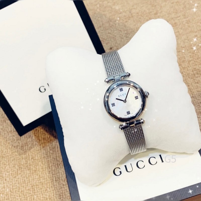 Kuori on sileä ja pyöreä. Se on täynnä Gucci-brändin elementtejä suunnittelussa. Se on upea, yksinkertainen ja siinä on erittäin sileät linjat. Siinä on retroelementtejä ja metallikoristeita. Kotelon sivulla on kuviokaiverrusprosessi, joka on hyvin kolmiulotteinen. 316L ruostumattomasta teräksestä valmistettu kotelo ja hihna on yhdistetty 10-osaiseen irrotettavaan hihnaan, joka sopii kaikille ranteen ympärysmittaille. Super A-luokan syvänmeren helmiäinen kellotaulu, Sveitsistä tuotu kvartsikoneisto, safiiri naarmuuntumaton peili, halkaisija 27 mm