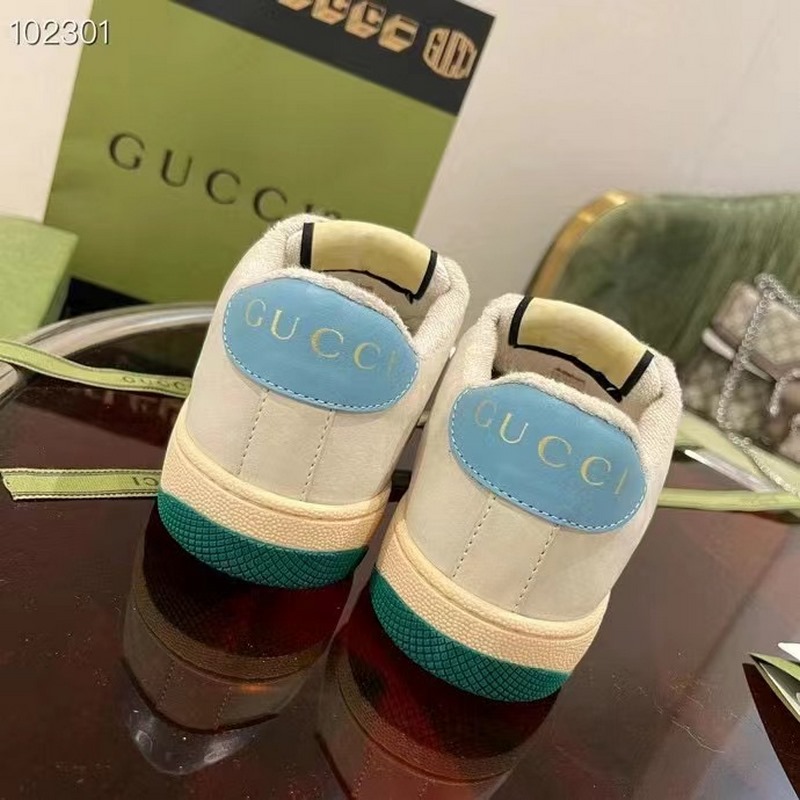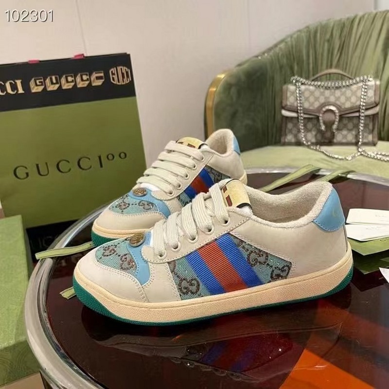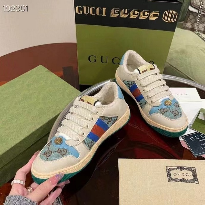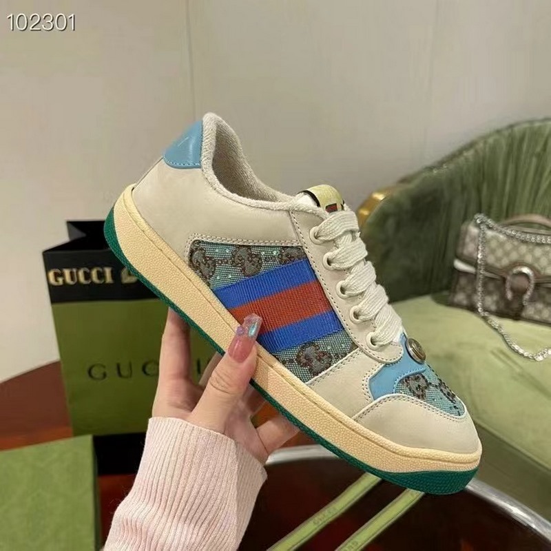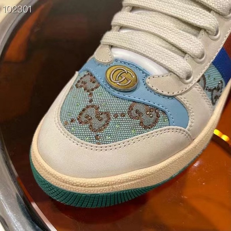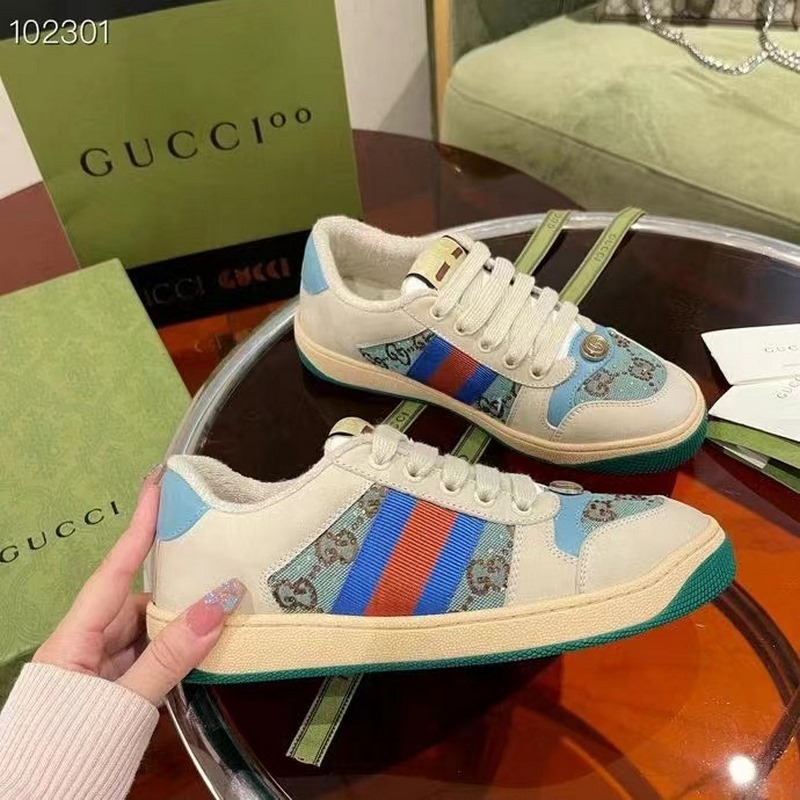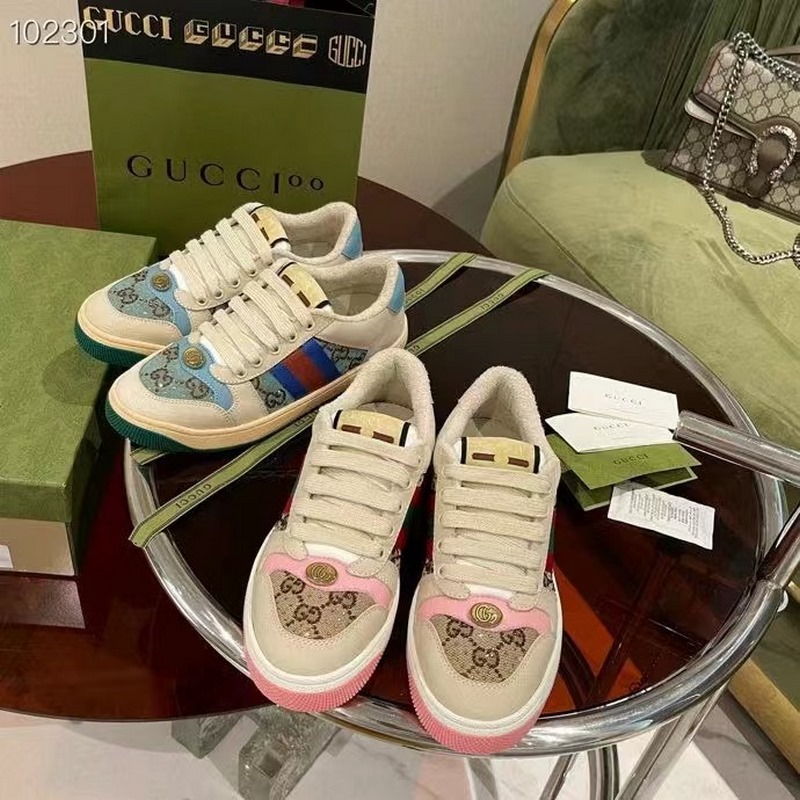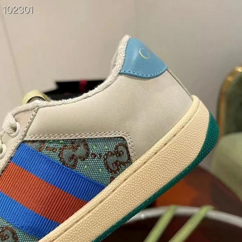 Gucci Screener -sarjan urheilujalkineiden suunnittelu on saanut inspiraationsa 1970-luvun retro-urheilutyylistä, jossa yhdistyvät nostalgiset muodot ja materiaalit, koristeltu brändin ikonisella raidallisella nauhalla, silmukoidulla nahalla ja onttonahalla, pehmeällä liukumattomalla TPU-ulkopohjalla ja nahkapisteillä selässä; eksklusiivinen harjattu lehmännahkakangas, alkuperäinen pyyhekangas on herkkä ja pehmeä, mukavampi ja hengittävämpi