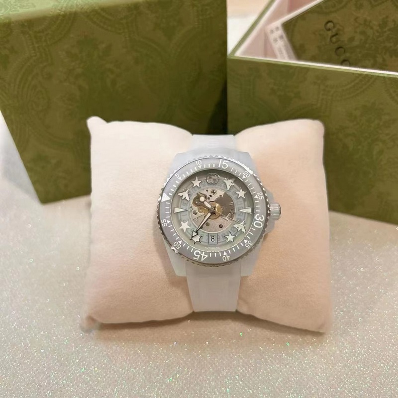 GUCCI:n alkuperäinen uusi malli, Gucci Dive -sarjan kello on äskettäin lanseerattu, ja se on saanut inspiraationsa sukelluskellosta, mehiläisistä, tähdistä ja muista elementeistä, jotka koristelevat läpinäkyvää kellotaulua herättäen aitoja muistoja.