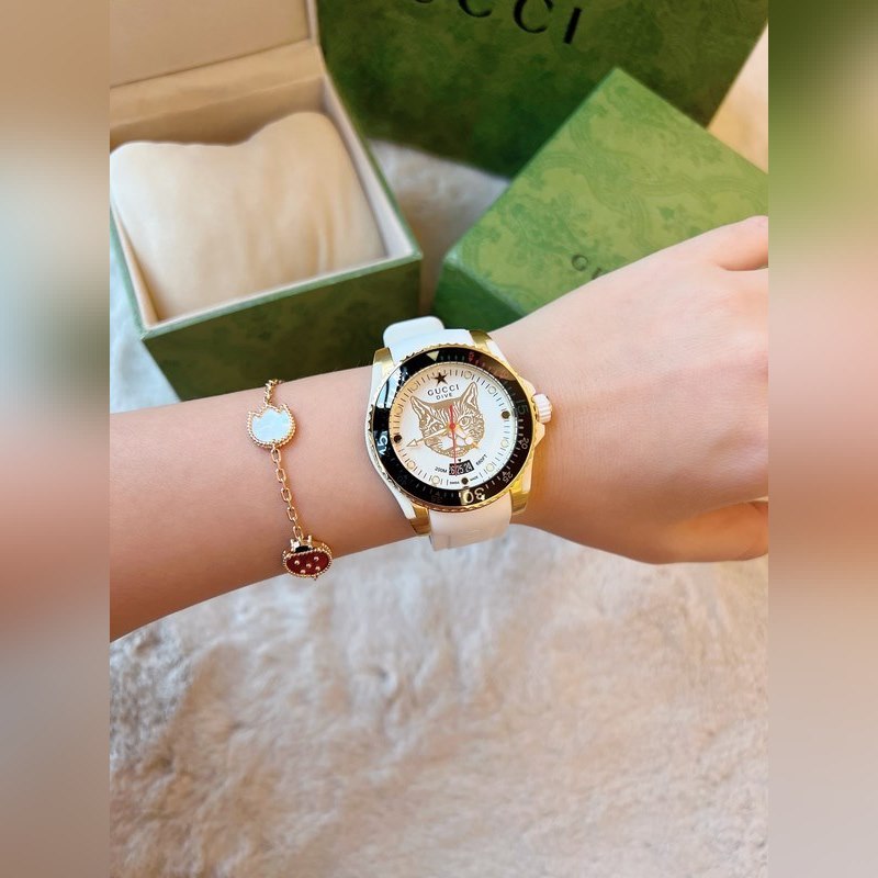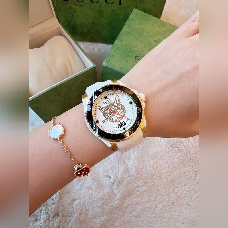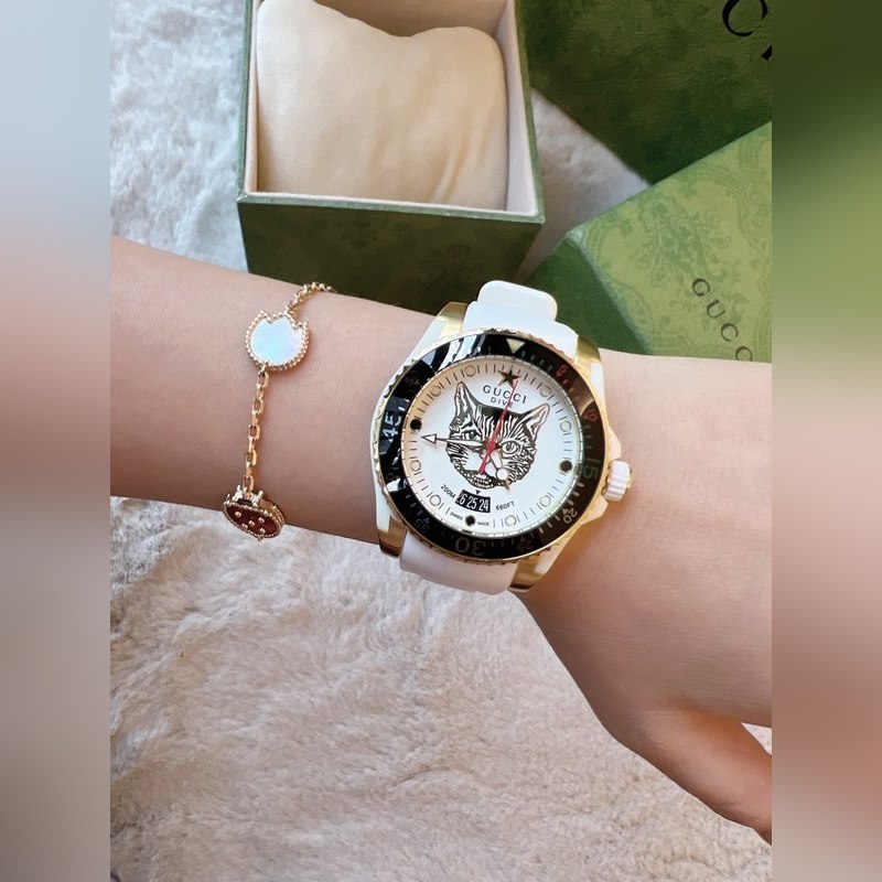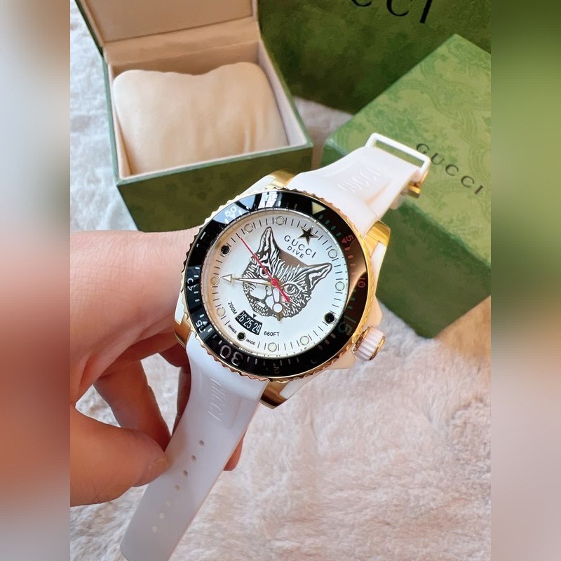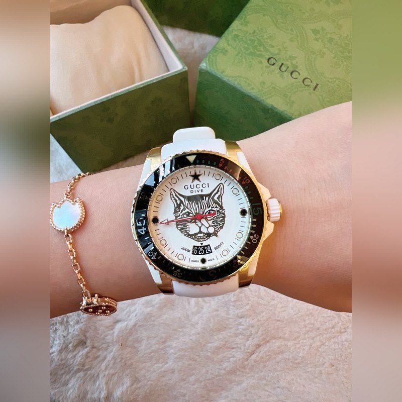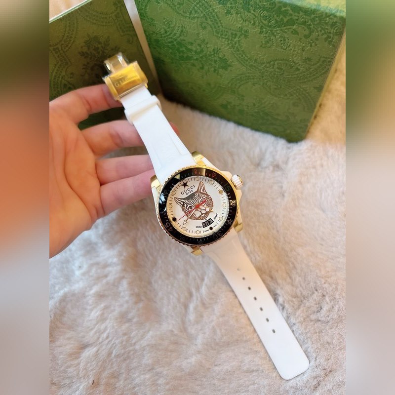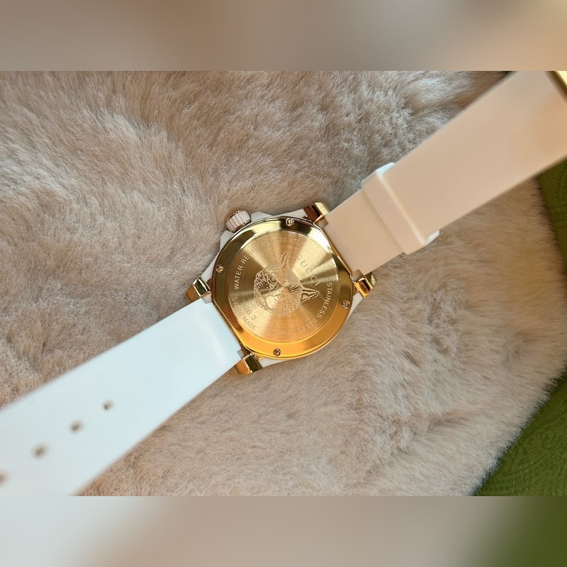 Yksinkertainen ja silmiinpistävä tyyli, litteä safiirikristallilasipeili on integroitu kehykseen ja koteloon, mikä muodostaa kellon sileän ja täydellisen ulkonäön. Erinomainen esitys Guccin yksinkertaisesta modernistisesta esteettisestä suunnittelukonseptista, hihna on saanut inspiraationsa Gucci-logosuunnittelusta, ammattitaito on monimutkaista, linjat ovat sileät, mikä parantaa yleistä käyrää. Safiirilasi, halkaisija 40 mm, 30 m vedenpitävä