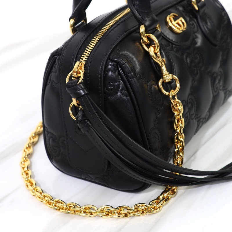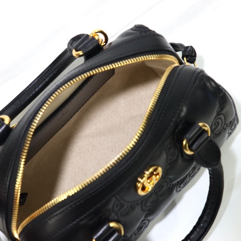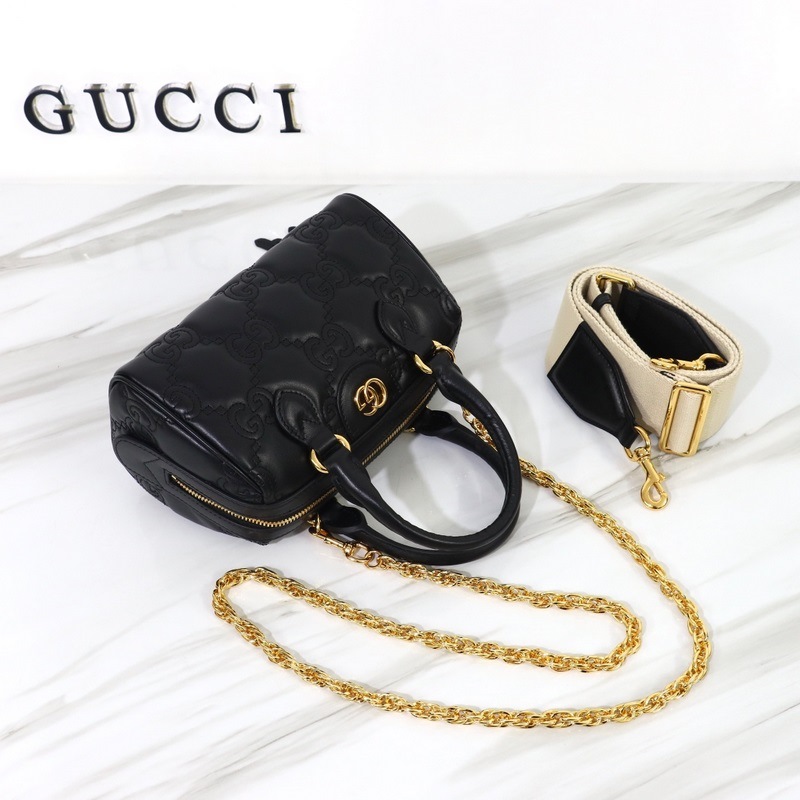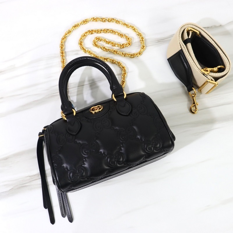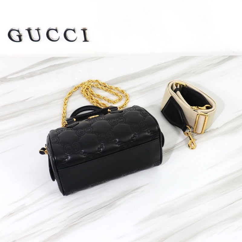 GUCCI Double G Logo käsilaukku Crossbody Laukku Double olkahihna Tyyli nro: 702251 Musta nahkakirjonta