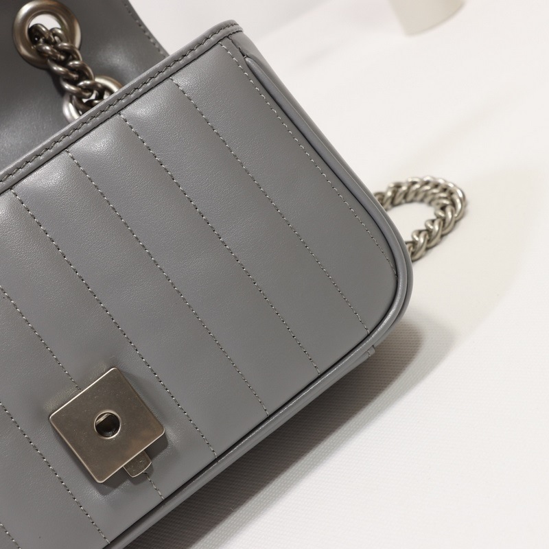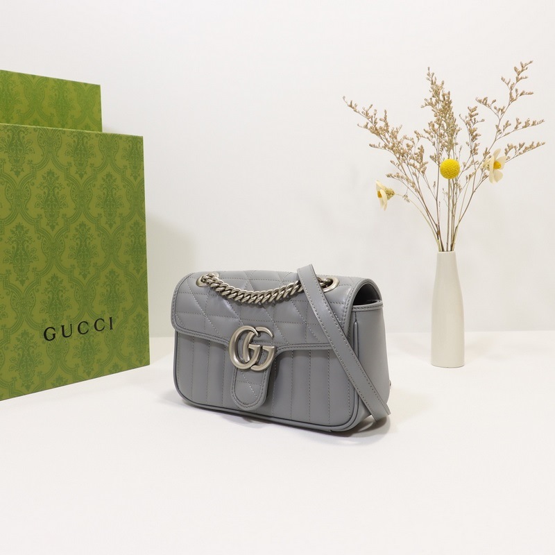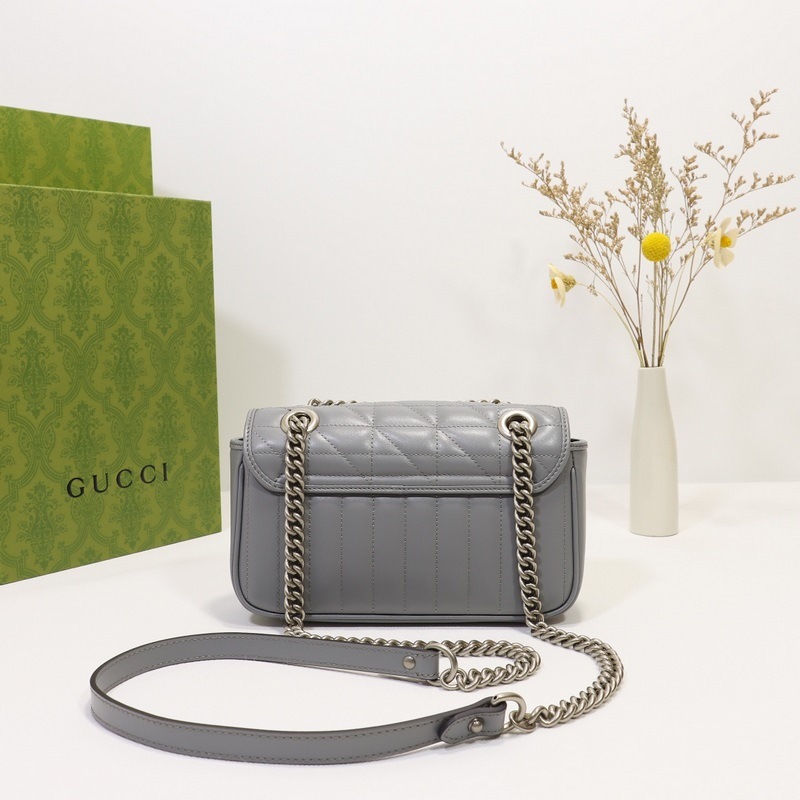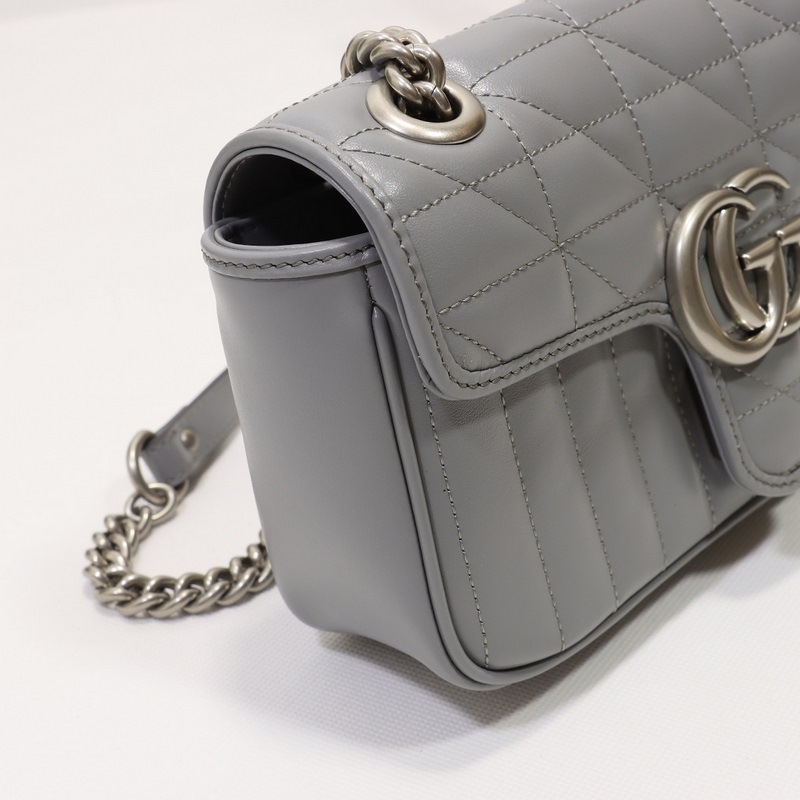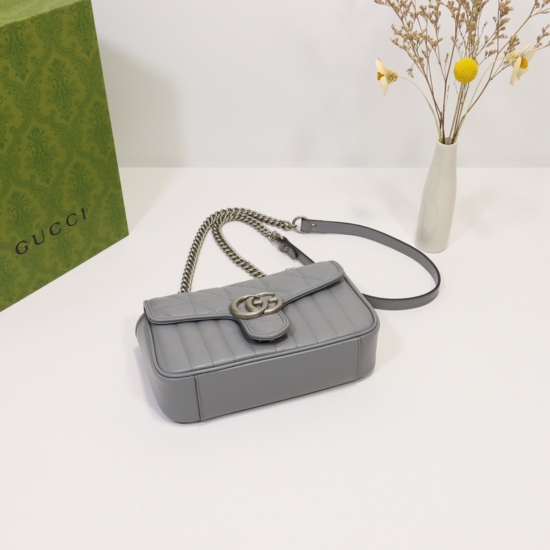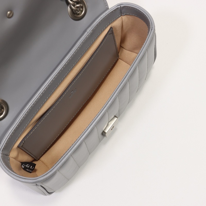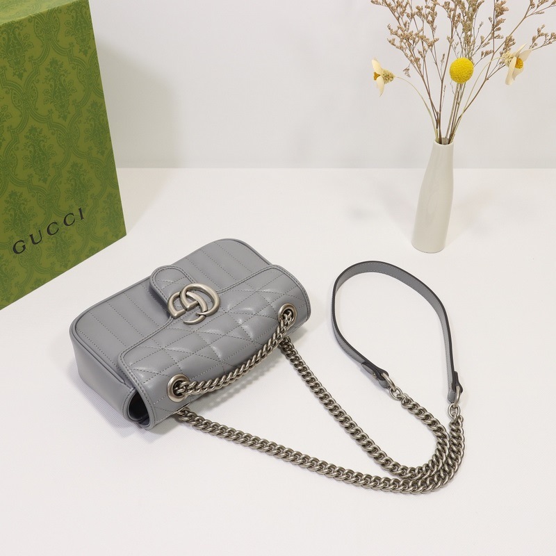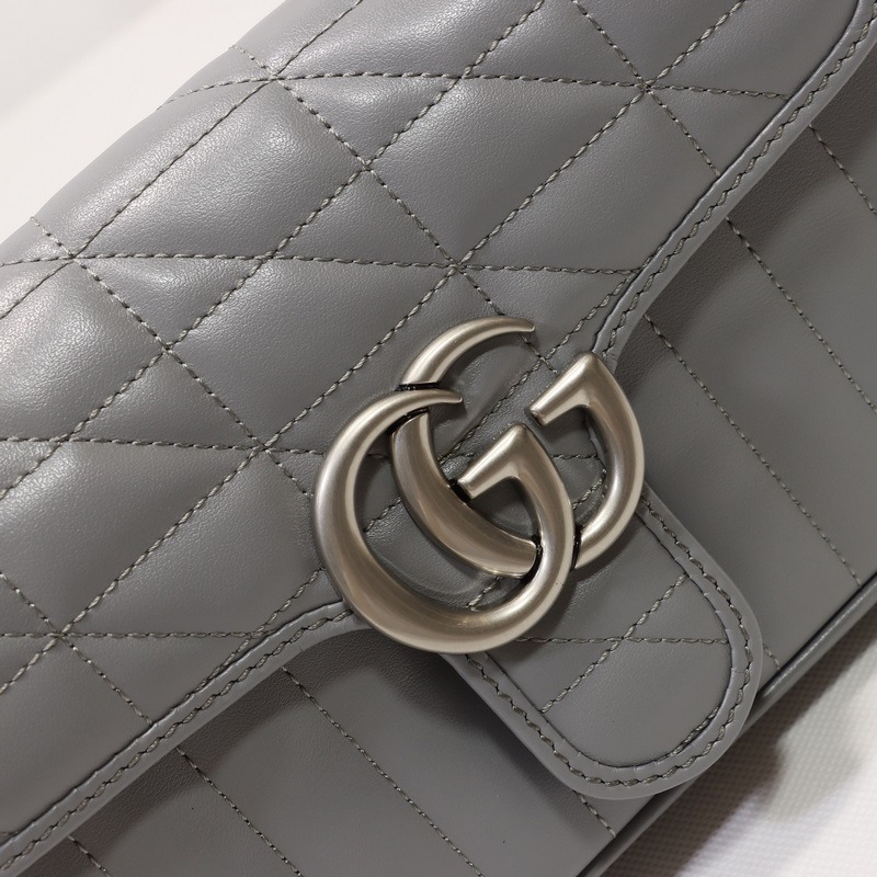 GUCCI Double G -logo yksiolkainen Crossbody käsilaukku Malli nro: 446744 Harmaa nahkaruudullinen