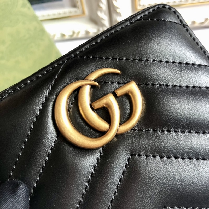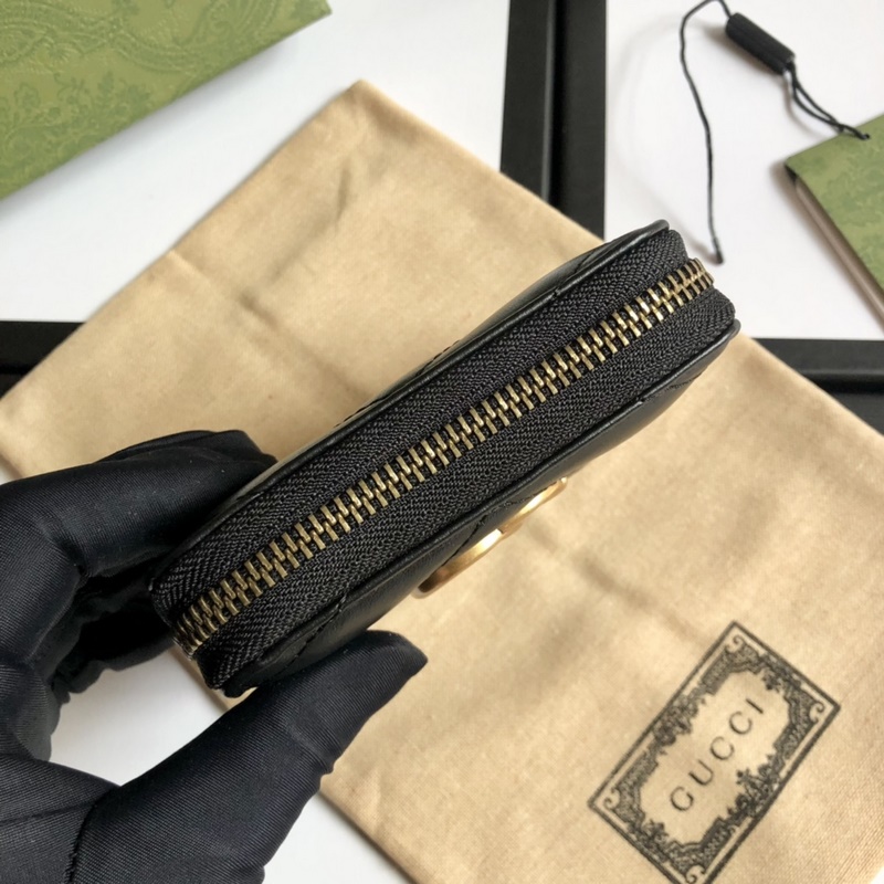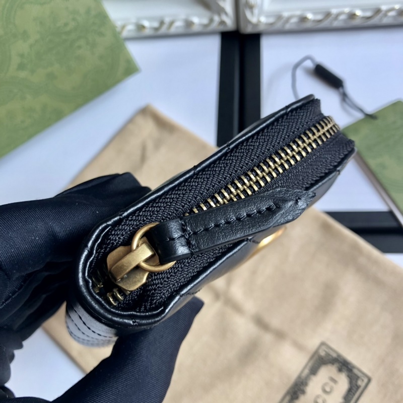 (Alkuperäinen nahka) Alkuperäinen kaksinkertainen G-pronssimetallinen ihmishahmo tikattu nahka, jossa retrokultaiset metallitarvikkeet takana, kaksoissolkivetoketju kolikkolaukku malli: 474813, väri: musta. Koko: 11,5 x 10 x 2,5 cm