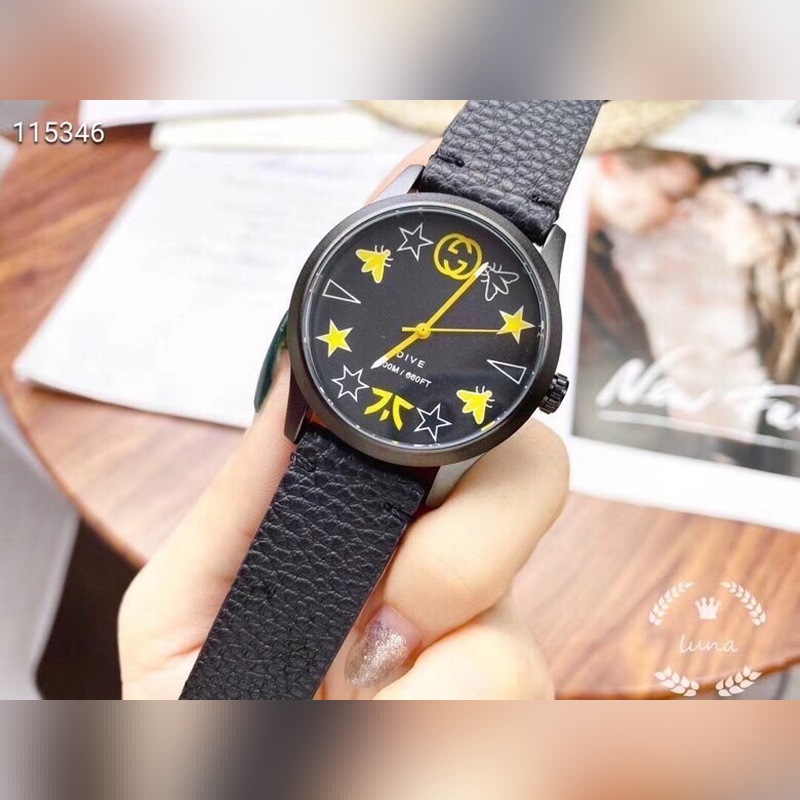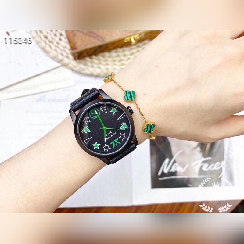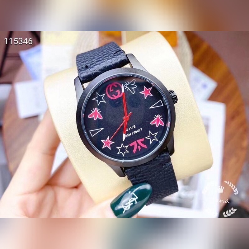 Erityisen hyvä kello, haluan aina jakaa sen. Guccin patentoitu kotelomuotoilu, 2 G-muodot ovat ainutlaatuisia, muodikkaita ja niitä ei voi hukata. Värikäs pinta heijastaa muotitrendiä. Hihna on pehmeä ja mukava. Ruostumattomasta teräksestä valmistetulla tappisoljella se on klassinen ja monipuolinen