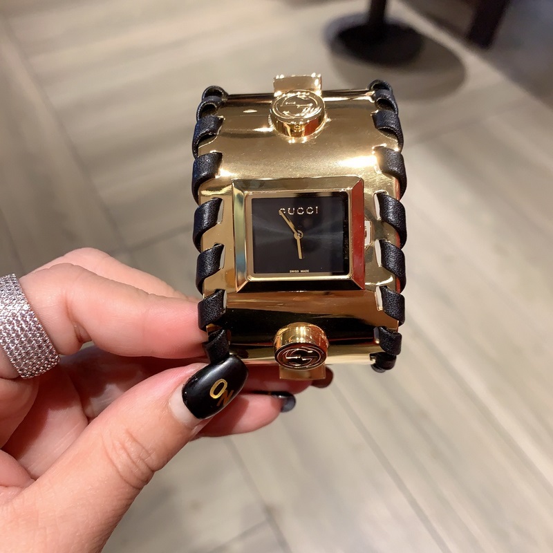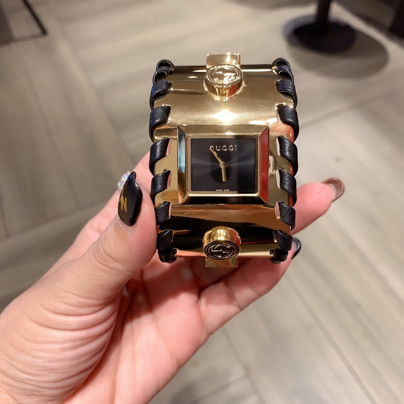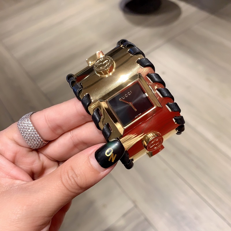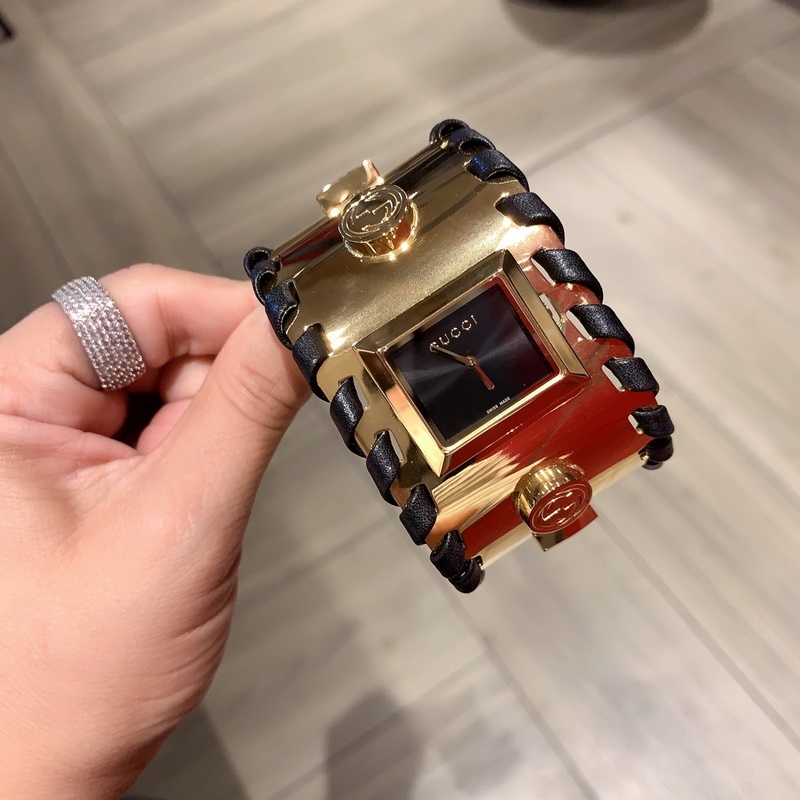Guccin uusin sarja julkkistason rannekellot, maahantuotu kvartsiliike, koko ranneke on suunniteltu rannekorutyyliin ja ranneke on valmistettu hienosta teräksestä. Se on sekä suosittu että täynnä tunnelmallista kauneutta, ja se osoittaa täydellisesti Guccin ikonisen tyylin sekä elegantin ja puhtaan naisellisen temperamentin. Koko 33mm, hihnan pituus 23cm
