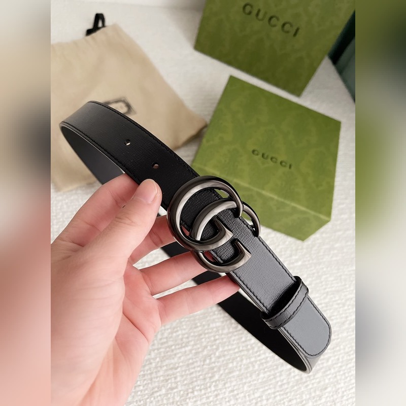 Gucci klassinen musta GG Marmont -vyöValmistettu mustasta nahasta Double G -vyön soljella
