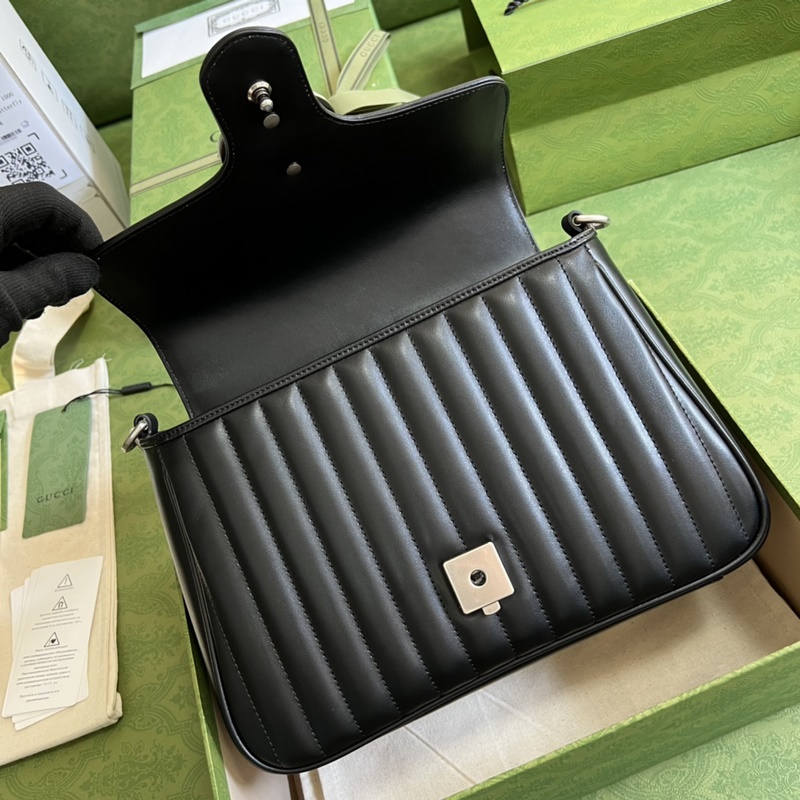 GG Marmont -sarja on yksi Guccin suosikkikäsilaukkuista, ja se saa kiitosta ikonisista kaksois-G-kudotusta tarvikkeista ja tikatusta nahasta. Guccin “Aria-Fashion Aria” -sarjassa GG Marmont -sarja tulkitsee klassisen materiaalin uudelleen geometriseen tyyliin yhdistettynä kaksinkertaisiin G:n muotoisiin lisävarusteisiin antiikkihopeasävyissä ja lanseeraa tämän upean mustan minikäsilaukun. Malli: 498110.