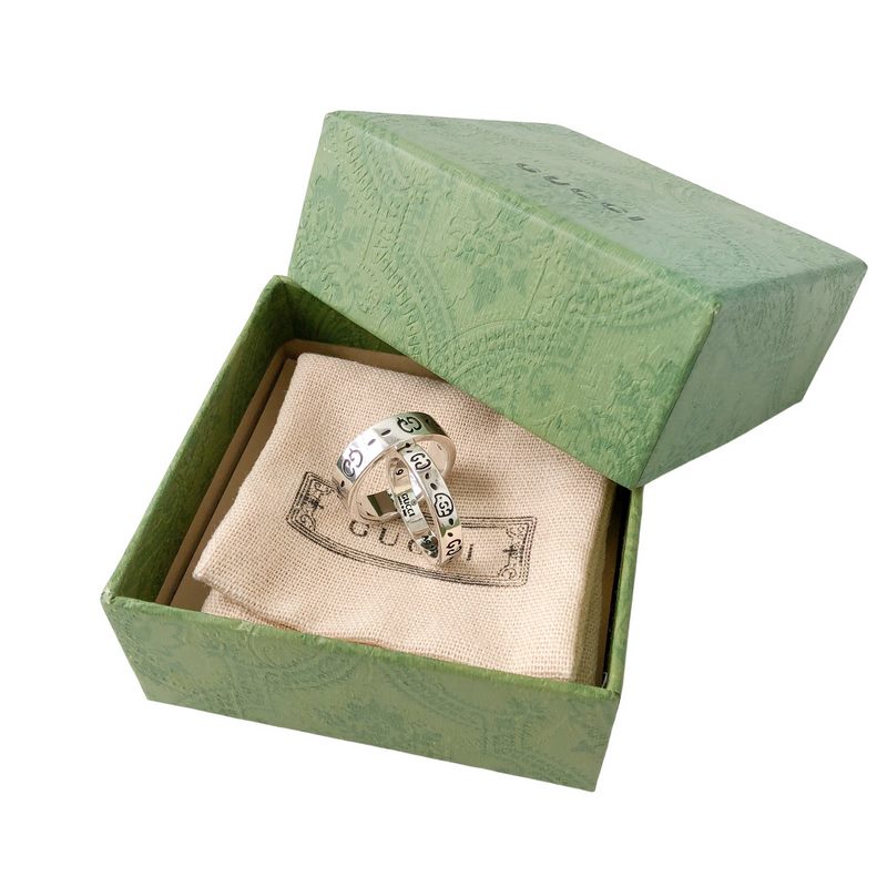 GucciGhost haamusormus, pariskuntasuositus Erittäin hyvännäköinen Gucci parisormus, ystävänpäivälahja kumppanillesi. Sekä miehet että naiset voivat käyttää sitä. Muotoilu on yksinkertainen, eikä se ole liian äkillinen, kun sitä käytetään päivittäin. Se on superhieno parisormus, joka ei törmää muihin. GUCCIGhost parisormus on täällä~ Tämä on pari sormuksia, jotka ovat sekä hyvännäköisiä että ainutlaatuisia. Se sopii viileille pariskunnille ja sitä voidaan käyttää myös yksin. Parisormuksia valitessasi et pidä liian muodollisesta tyylistä. Ystävät, jotka törmäävät usein muiden kanssa, katsokaa. GucciGhostin sterlinghopeasormus myydään virallisella verkkosivustolla hintaan 2 200 RMB. Mallinumero on 477339 J8400011190 1. Tämän sarjan ovat yhdessä luoneet brooklynilaiset taiteilijat Trouble Andrew ja Alessandro Michele. Koko ulkorengas on ikoninen kaksois-G-kuvio, jossa on pieni haamukuvio. Guccin eksklusiivinen puhdas käsintehty mustatus ja vanhanaikainen prosessi, joten jokainen sormus on erilainen. Ainutlaatuisena parikoodina se on hyvin erityinen.