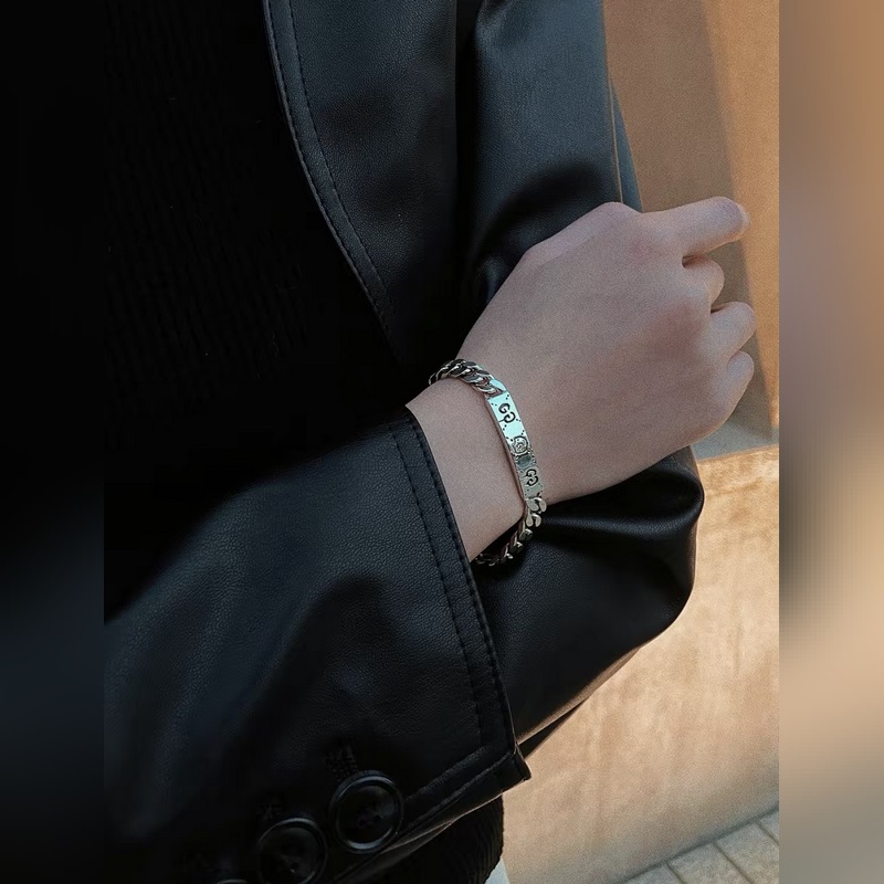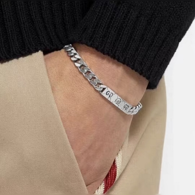 Xiao Zhanin GUCCI Ghost sterlinghopeaa kuubalainen tonttukallo-pariranneke, Cai Xukunin samaa tyyliä, suositellaan lahjaksi pariskunnille. Samatyyliset parirannekorut kuin julkkiksilla, persoonallinen kallokuvio, muodikas ja monipuolinen. Monet Internet-julkkikset rakastavat tätä tyyliä. Alessandro Michele kutsui Designer Trouble Andrew’n tekemään yhteistyötä brändin kanssa ja luomaan erityisen sarjan, joka yhdistää täydellisesti Guccighostin katutaidetta Alessandron suunnitteluun. Tässä hopeaketjussa on nimikilven yksityiskohta, ja siihen on kaiverrettu Guccighost-kuvioita.