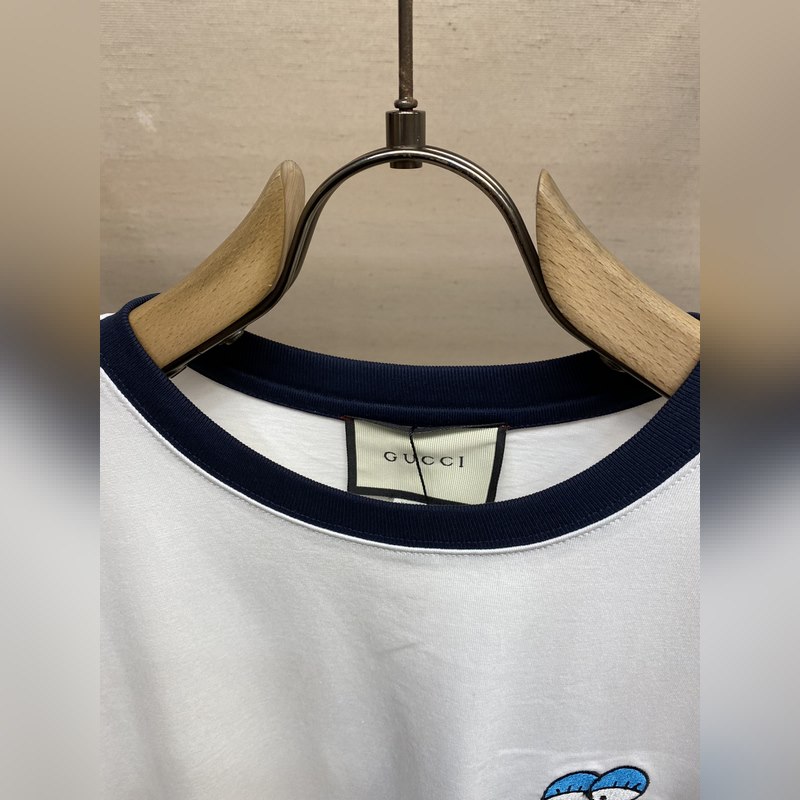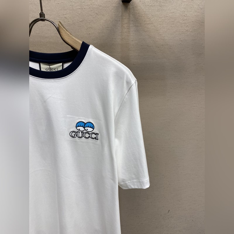 Gucci, GU silmät kirjailtu Hattie Stewart luova logo lyhythihainen T-paita Taiteilija ja kuvittaja Hattie Stewartin uusi luova sarja. Koriste-elementit osoittavat laadukasta temperamenttia. OS-versio sopii yhteen eri muotityylien kanssa. Ympäristöystävällinen neulottu puuvillakangas, pehmeä ja herkkä, mukavampi ja hengittävä. Rakenne on moitteeton, yksinkertainen ja täynnä ainutlaatuista charmia. Uusi hauska Hattie Stewart -logo on luotu digitaalisella kirjontaompelutekniikalla. Pyöreä ja kolmiulotteinen muoto on erityisen kaunis heijastaen hienoa käsityötaitoa ja kirkkaita värejä. Kauluksen kontrastivärinen tekniikka korostaa nuorta ja muodikas temperamenttia. Korosta 90-luvun muotitrendiä ja vapaata ja hillitöntä tyylin charmia. Unisex-tyyli