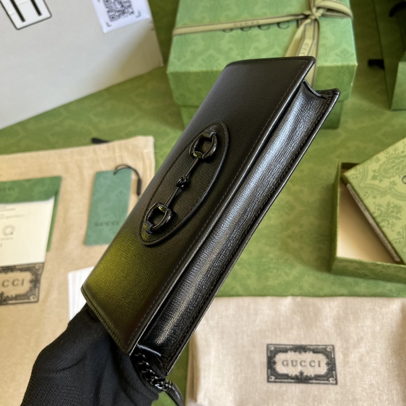 Horsebit 1955 -sarja Tämä Horsebit 1955 -sarjan käsilaukku on valmistettu mustasta täysnahkakankaasta, ja siinä on ainutlaatuinen musta nahkaputki, joka saa klassisen muotoilun hehkumaan uudella viehätysvoimalla. Tämä käsilaukku perii yksittäisen tuotteen linjat ja muodon yli 60 vuotta sitten, yhdistää nerokkaasti klassiset yksityiskohdat moderniin henkeen ja korostaa merkin ikonisen elementin, hevosbitin, viehätystä. Tämä pieni läpällinen olkalaukku on varustettu säädettävällä olkahihnalla, joka voidaan vapaasti muuttaa olkapään ja poikkivartalon väliin.
