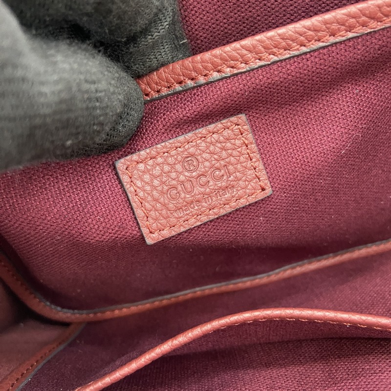 Uusi Gucci Jackie Small Tote. Uusi Jackie Small Tote on uusi tyylikkyys ja hienostuneisuus. Tämä kappale on valmistettu Gucci Rosso Ancora premium -nahasta, jossa on luonnollista rakeita. Irrotettavan ja säädettävän olkahihnan, yläkahvojen ja klassisen hakaskiinnityksen ansiosta tähän laukkuun mahtuu helposti päivittäiset tavarat mihin tahansa tilanteeseen. Gucci Rosso Ancora -nahkaa, vaalean kullan sävyinen laitteisto, vuoraton, sisäpuoli: 2 avotaskua, kahvat (korkeus 7 cm) irrotettava ja säädettävä olkahihna (säädettävä välillä 50 cm – 54 cm) hihnan pituus: 112 cm, hakaskiinnitys.