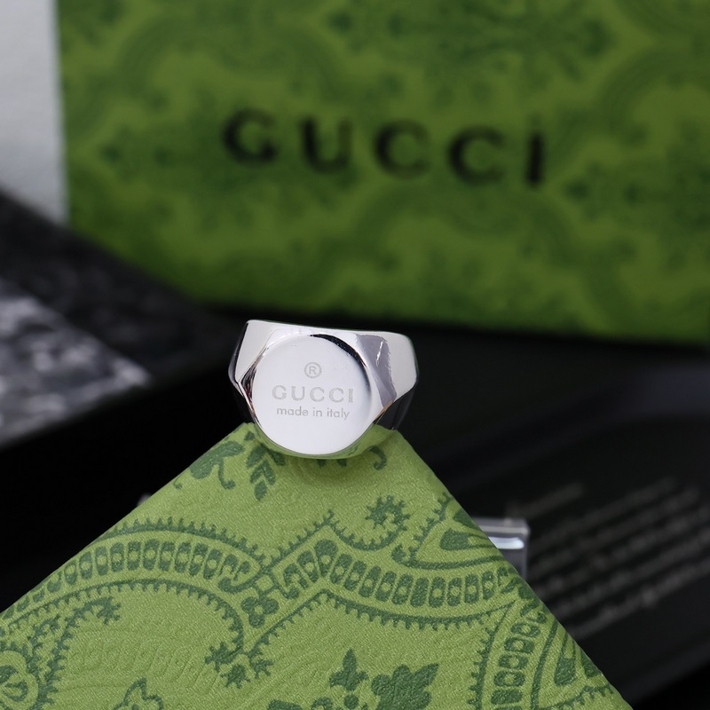 [Ystävänpäivälahja] GUCCI Gucci -logo kaiverrettu leveä kapea sormus, koko 6-11