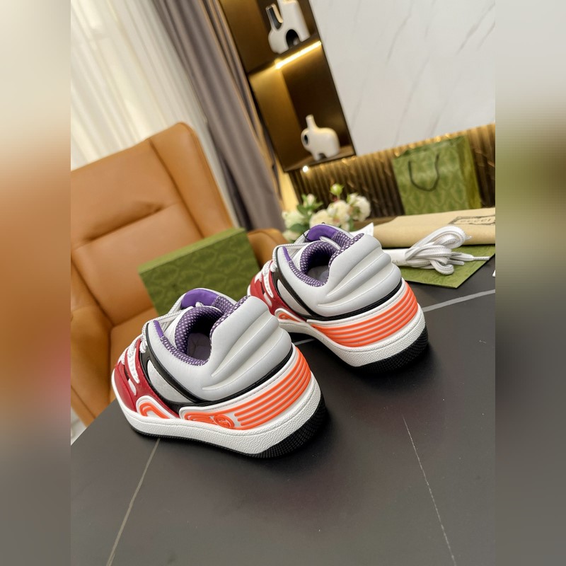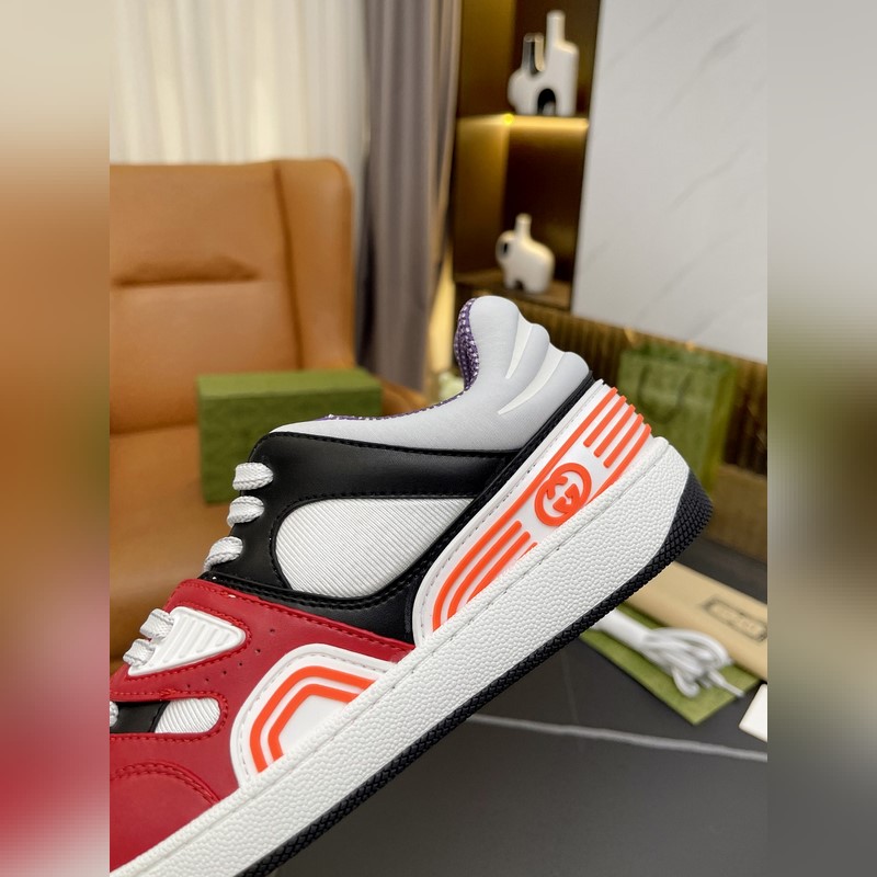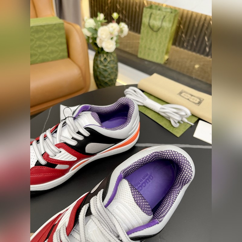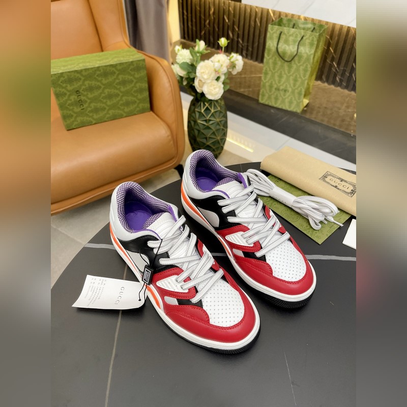Korkea versio. GUCCI lanseeraa uuden G-perheen pariskunnan Basket-lenkkarisarjan, jonka urheilullinen ilme on saanut inspiraationsa 90-luvun koripallokengistä. Tässä matalavartisessa lenkkarissa on ikonisia elementtejä ja yksityiskohtia, jotka korostavat kentällä ilmaisemisen muotoilun estetiikkaa. Kengässä on sekoitettu kirkkaanvärisiä kankaita ja se on pääosin valmistettu kestävästä materiaalista Demtra. Tässä uudessa materiaalissa käytetään valmistustekniikkaa vastaavaa prosessia, mikä antaa sille erinomaiset pehmeys- ja taipuisuusominaisuudet. Tämä ympäristöystävällinen materiaali on peräisin pääasiassa kestävistä, uusiutuvista ja biopohjaisista lähteistä, jotka eivät sisällä eläinperäisiä ainesosia. Koko: Naiset 35-41 Miehet 39-46