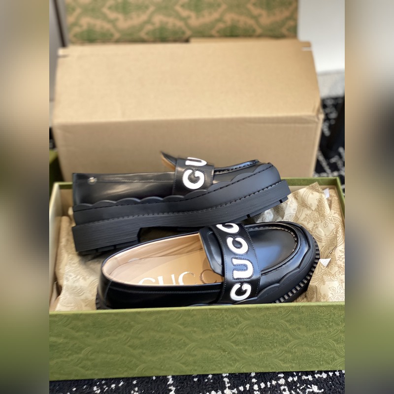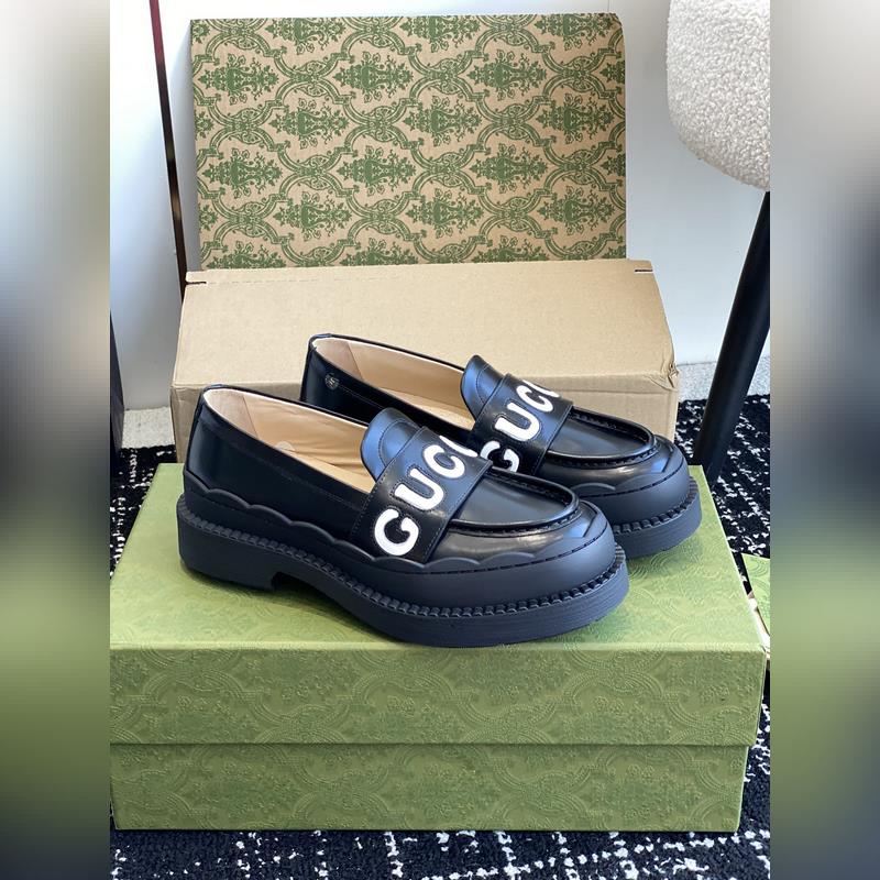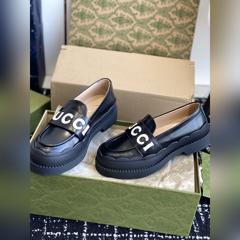 Gucci uusi logo aaltopohjainen kukka paksu pohjallinen loafers
