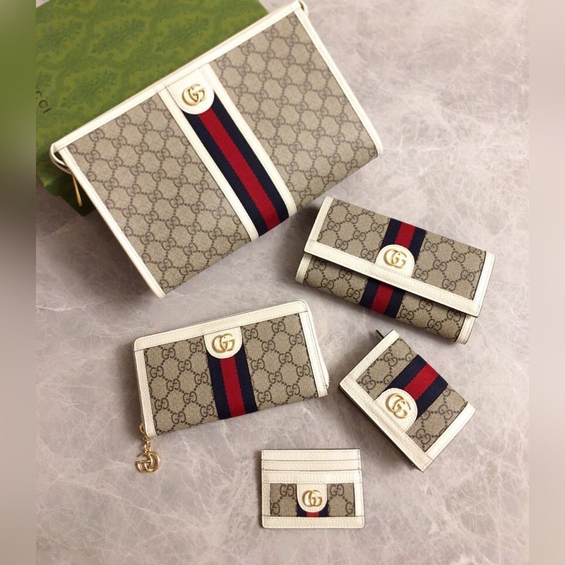 Uusi Ophidia-sarja on saatavilla virallisilla verkkosivuilla. Pieni korttiteline on valmistettu korkealaatuisesta GG Supreme PVC-kankaasta, jossa on ikoninen kaksois-G-laitteistomerkki, klassinen sininen ja punainen nauha, ja se on hienostunut. Mallinumero: 523159, koko: L10xK7cm, väri PVC/valkoinen