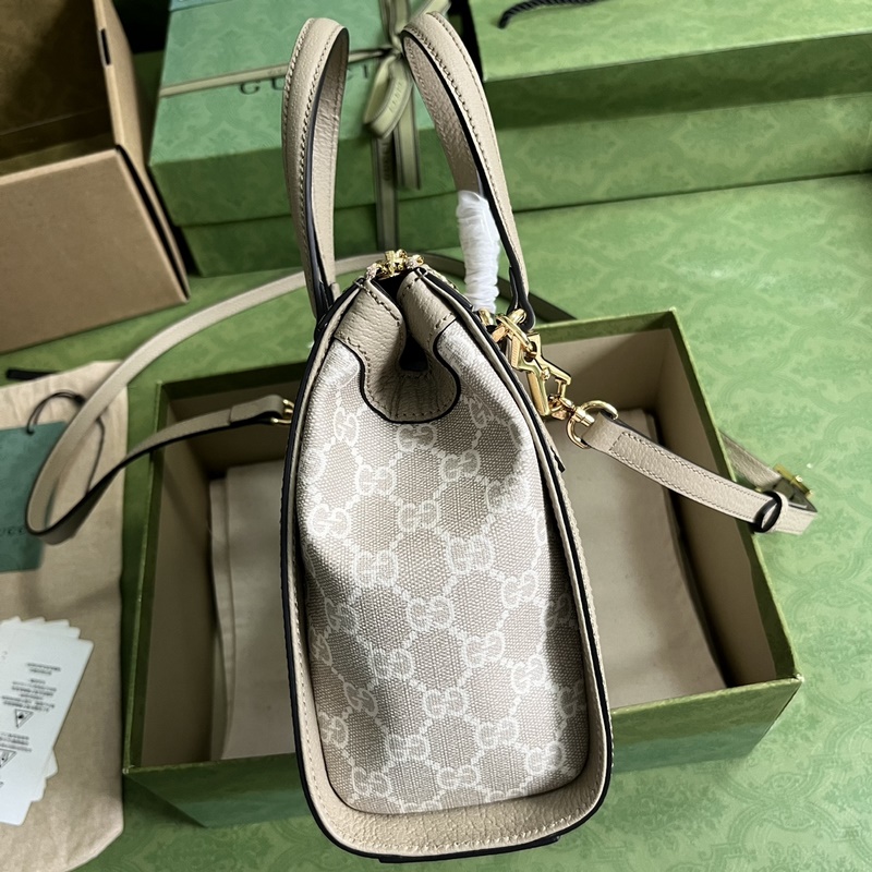Ophidia-sarjan pieni GG-kassi. Uudessa muotisarjassa “Gucci Love March” lanseerataan GG Supreme -kangas klassisessa ja ajattomassa kaurapuuron ja beigen yhdistelmässä, joka perii materiaalin historiallisen alkuperän. Kangasmateriaalia on käytetty monissa sarjoissa pitkään ja siitä on tullut brändin ikonimateriaali. Tämä Ophidia-sarjan pieni kantokassi käyttää klassisia värejä ja yhdistää kaurapuuroa sekä punaisen ja vihreän nauhan sisustuselementtejä. Beige ja kaurapuuro GG Supreme -kangas, kaurahiutaleet nahkaa, kullan sävyinen laitteisto, punainen ja vihreä nauha, mokkanahkakuvioinen mikrokuituvuori, sisäinen avotasku ja matkapuhelintasku, nahkaiset kaksoiskahvat (7 cm korkea) irrotettava olkahihna (59 cm korkea) Paino: noin 0,4 kg.