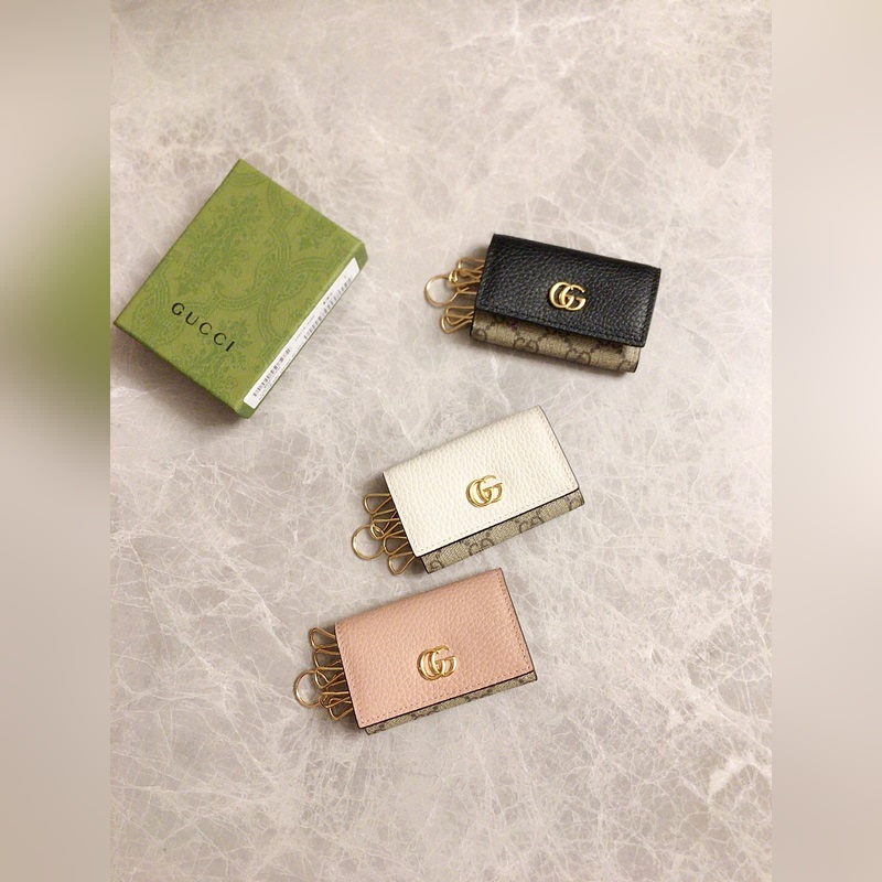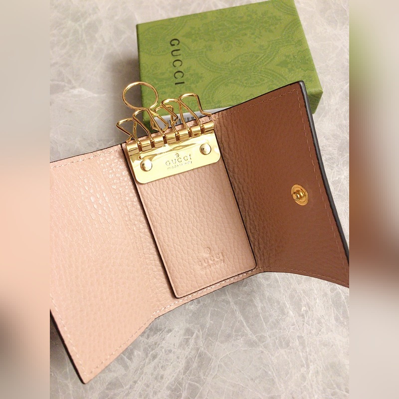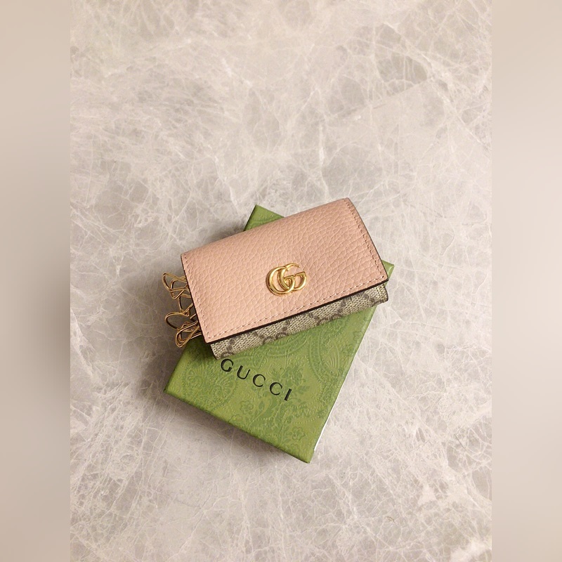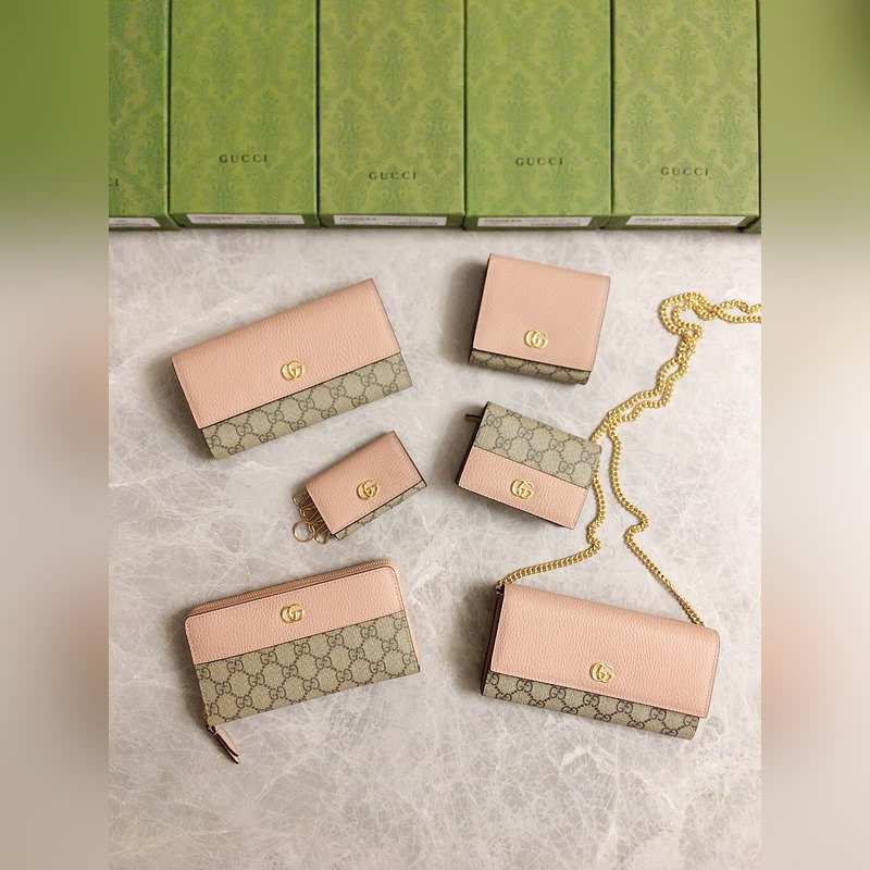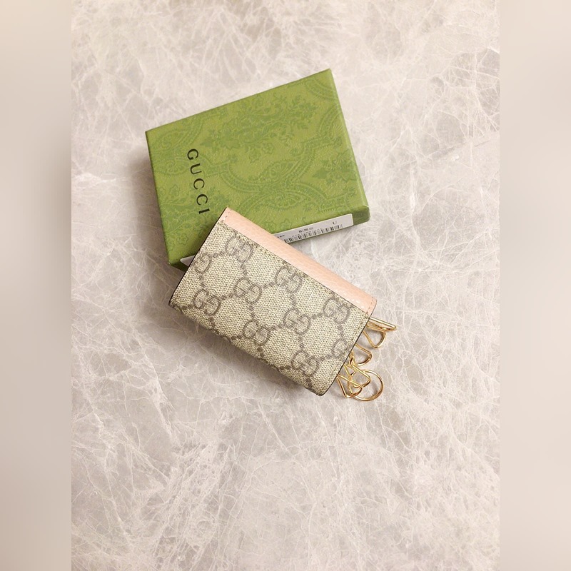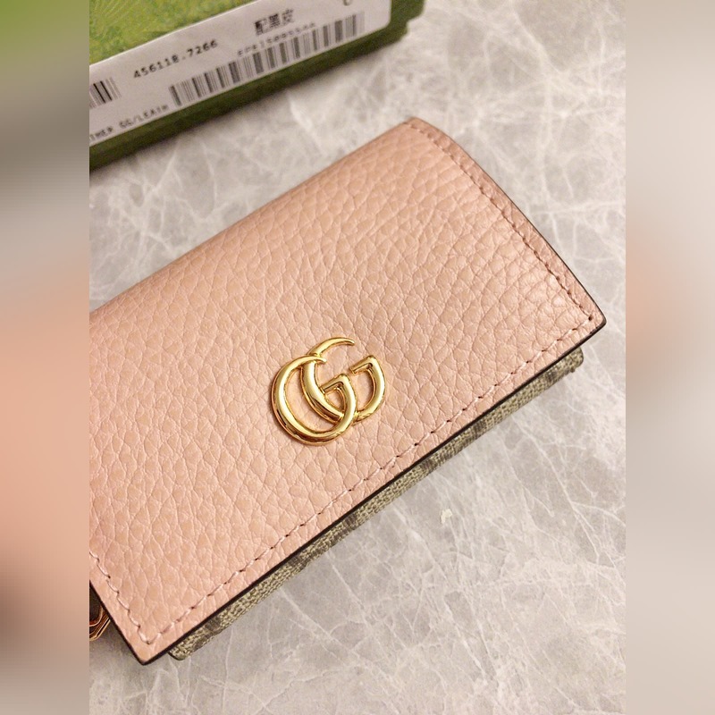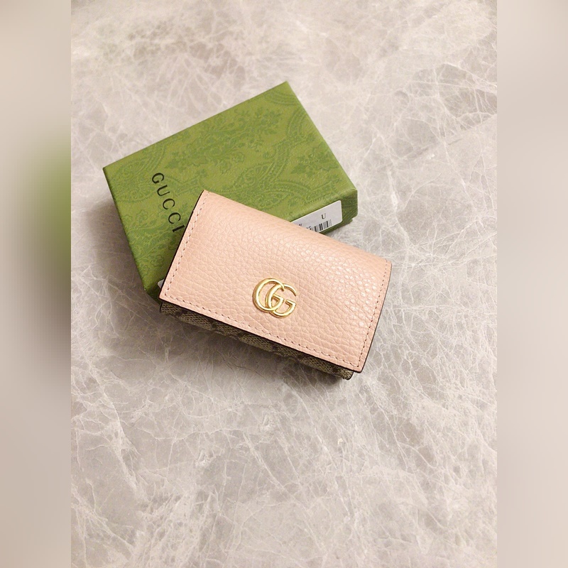 Guccin uusissa tuotteissa käytetään tuontia alkuperäistä nahkaa ja tuontilankoja. Uusi Ophidia-sarja käyttää italialaista tuontivasikannahkaa klassisilla kaksois-G-laitteistoilla. Uusia tyylejä ja muotoja on esillä. Rakenteellinen muoto, jossa sisäpuoli on jaettu osastoihin. Valmistettu laadukkaasta merentakaisesta laitteistosta, malli: 456118, väri: vaaleanpunainen nahka ruskea PVC, musta nahka/PVC, luonnonvalkoinen/PVC, koko: 10x6x3cm