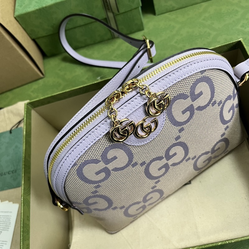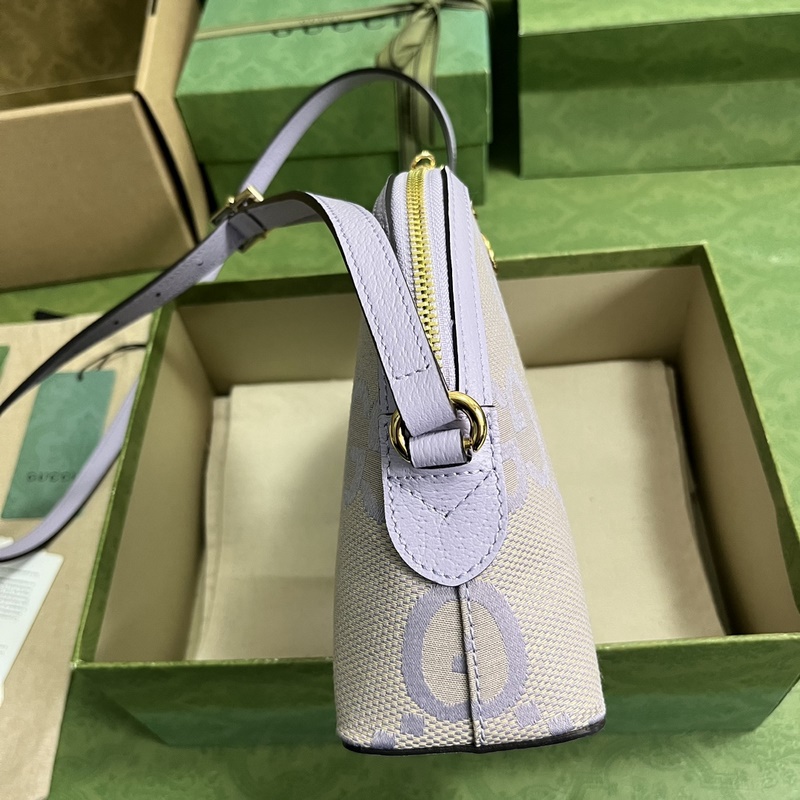 Ophidia sarjan Super Double G pieni olkalaukku. Ophidia-sarjan olkalaukku on valmistettu kankaasta ja siinä on retrotyyliä osoittava kupumuoto. Edellisestä Super Double G:stä poikkeava klassinen Double G -kirjainkuvio on liioiteltu tässä kamelin ja vaalean violetissa pienessä olkalaukussa. Kamelin ja mintunvihreä Super Double G -kangas, vaalean violetti nahkaverhoilu, kullan sävyinen hardware Double G, vetoketjunveto koristeltu Double G -riipuksella, sisäinen avotasku ja matkapuhelintasku, säädettävä olkahihna (44 cm korkea). Voidaan käyttää ristissä. Vetoketju, paino: noin 0,39 kg.