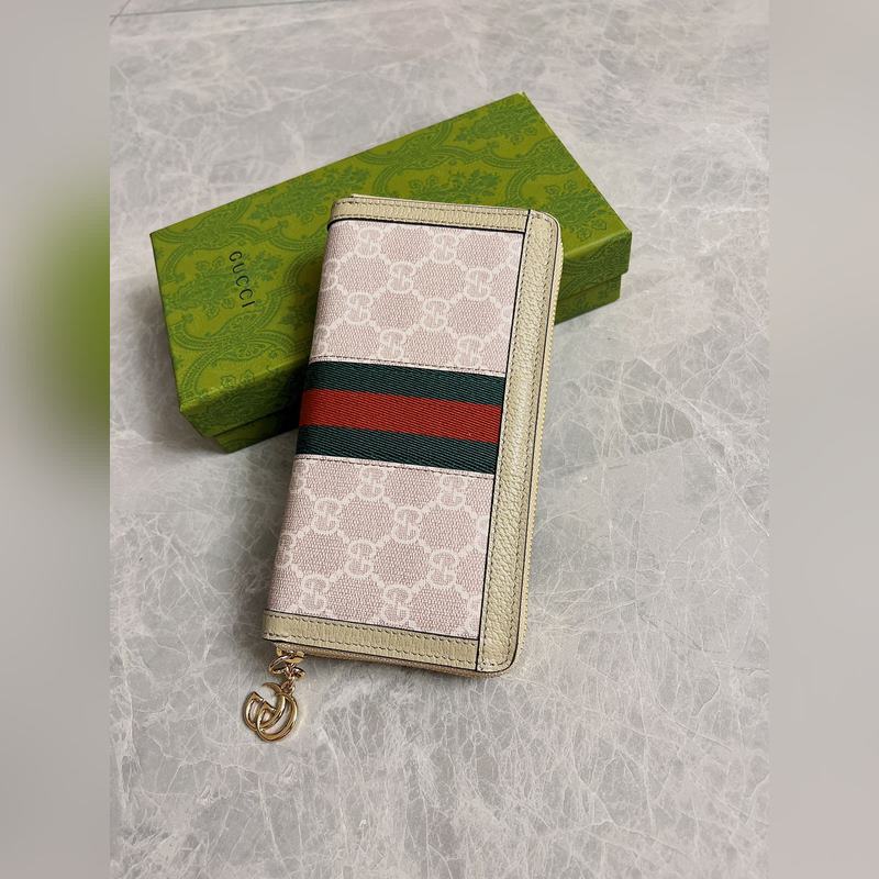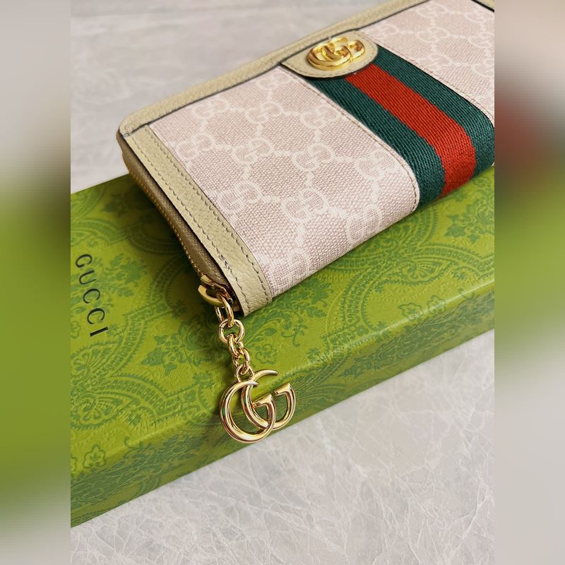 Uusi Ophidia-sarja on saatavilla virallisilla verkkosivuilla~ Vetoketjullinen pitkä klipsi, valmistettu korkealaatuisesta GG Supreme PVC-kankaasta ikonisella kaksois-G-raudalla, klassinen punainen ja vihreä nauha, hienostunut mallinumero: 523154, koko: L19xK10xS3cm, väri: beige