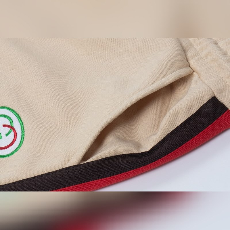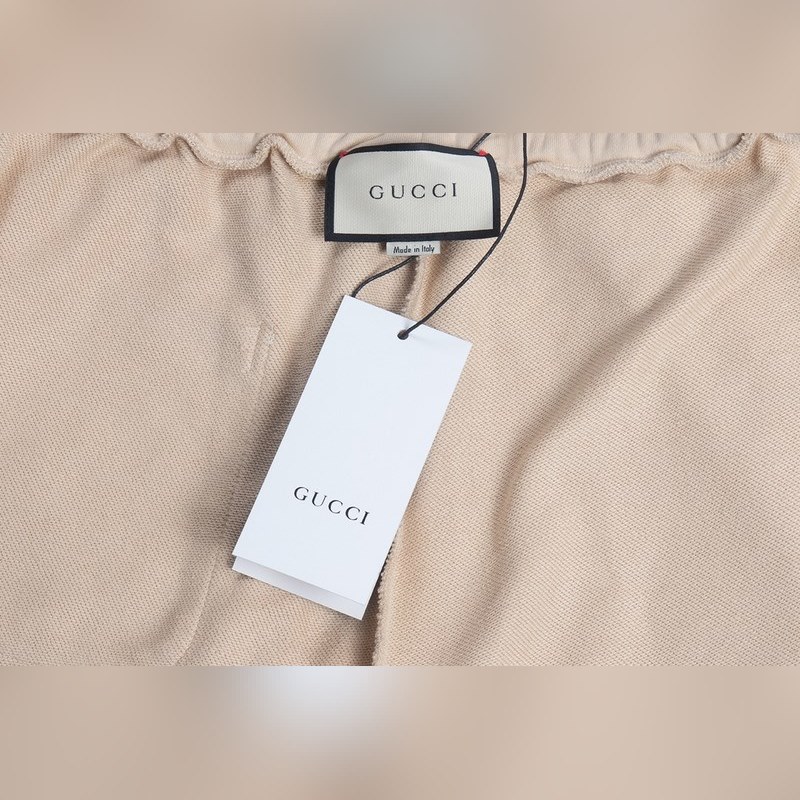 Guccin kevään ja kesän klassisissa brodeeratuissa kirjeshortseissa käytetään painavia, räätälöityjä alkuperäiskankaita