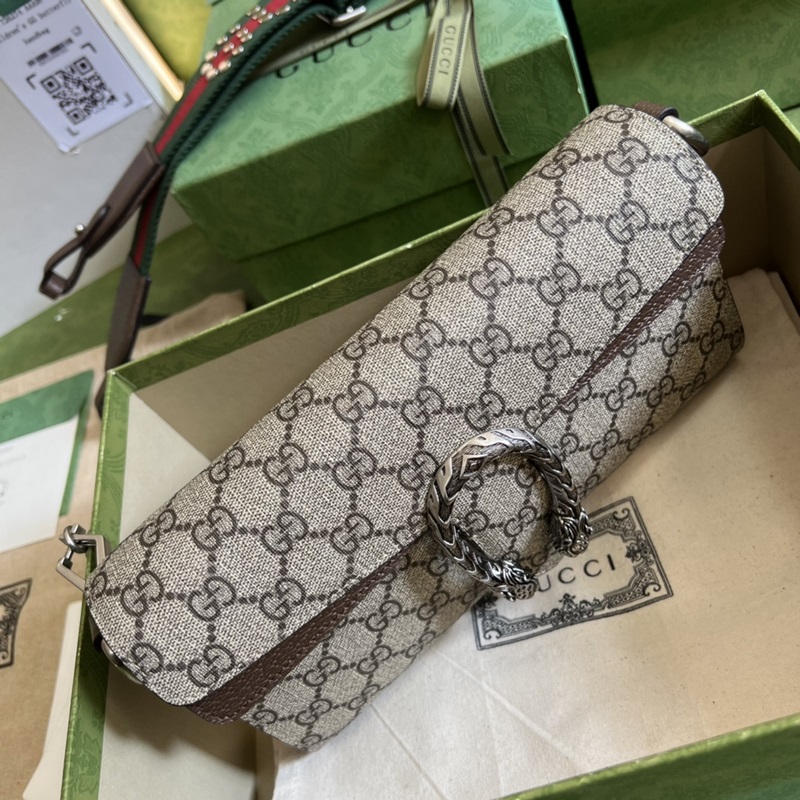 Pieni olkalaukku Dionysus-sarjasta. Brändi esitteli uuden design-elementin “Constellation” “Gucci Star Story” -muotinäytöksessä. Uuden sukupolven Dionysus-sarjan käsilaukkuissa käytetään edelleen tiikeripäälukkoa, joka on nyt hyvin tunnistettava design-elementti. Laukku on pieni ja rapea, ja siihen sopiva verkkoolkahihna on koristeltu nastoilla, joissa on sana ” “, mikä tekee tästä kappaleesta katseenvangitsijamman. Vihreä ja eebenpuinen kangas, vihreä nahkaverhoilu, vintage hopean sävyinen laitteisto