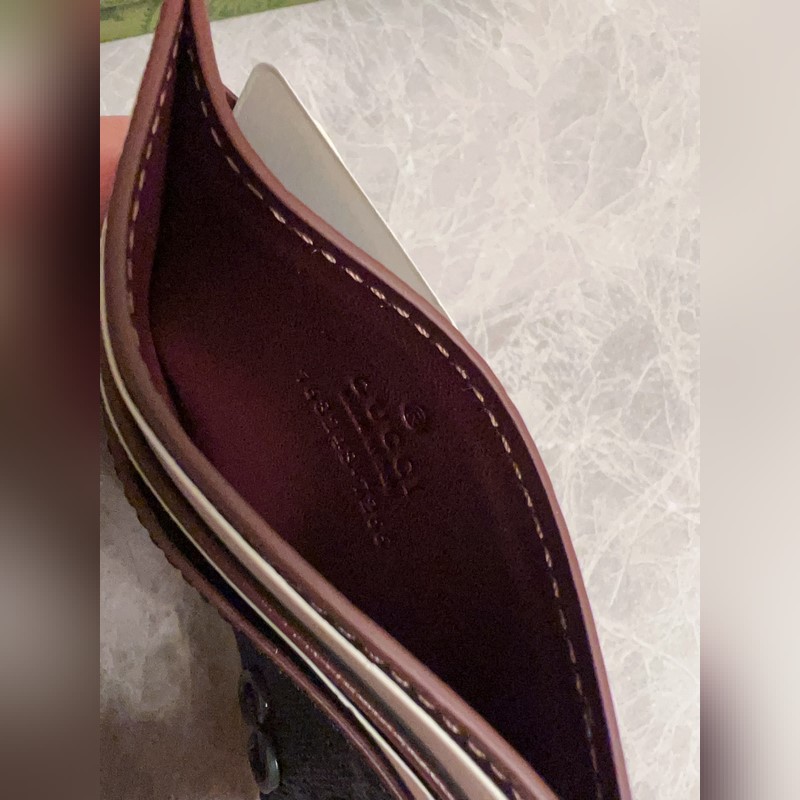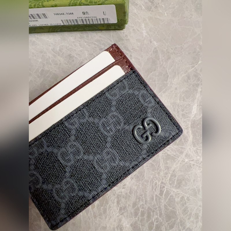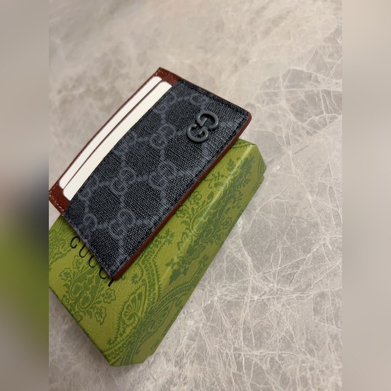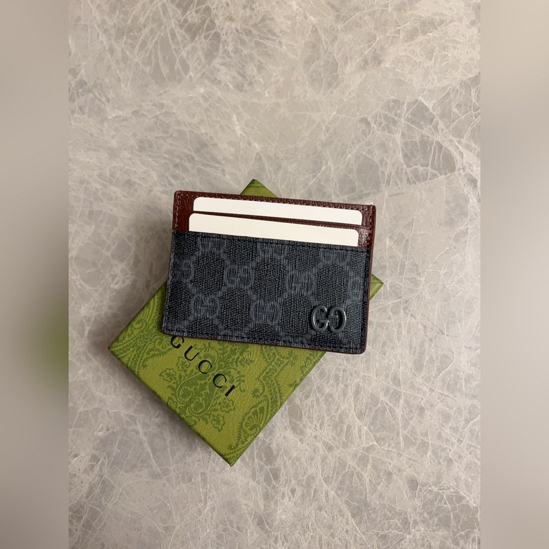 Guccin uusin sarja esittelee ~ Korttiteline on suunniteltu kontrastisella kaksisävyisellä muotoilulla, joka saa laukun GG-logon loistamaan. Kangas on mustaa GG:tä ja vuori kontrastiväristä lehmännahkaa. Musta GG Supreme canvas tummanharmaalla keraamisella efektillä kaksois G, koko: 11x 7cm