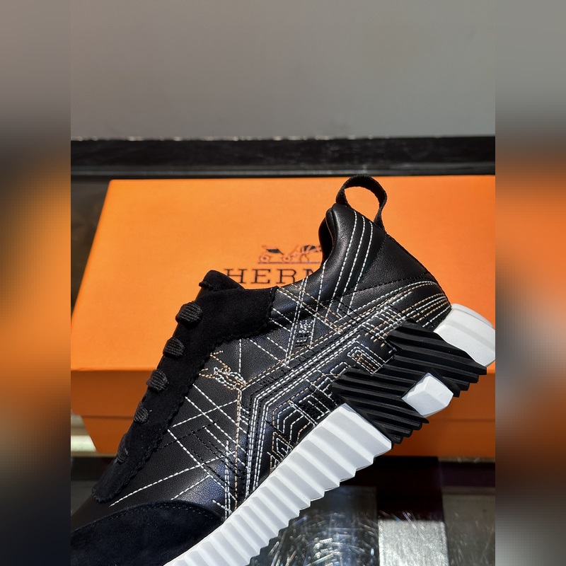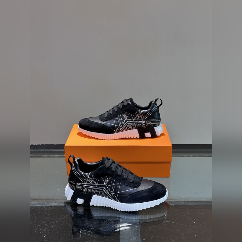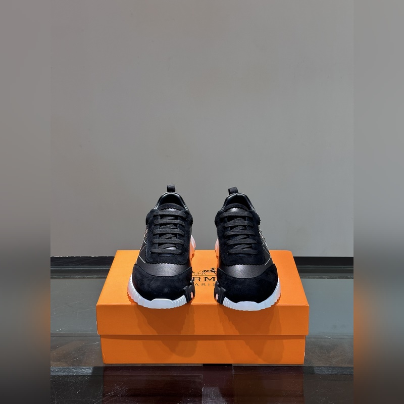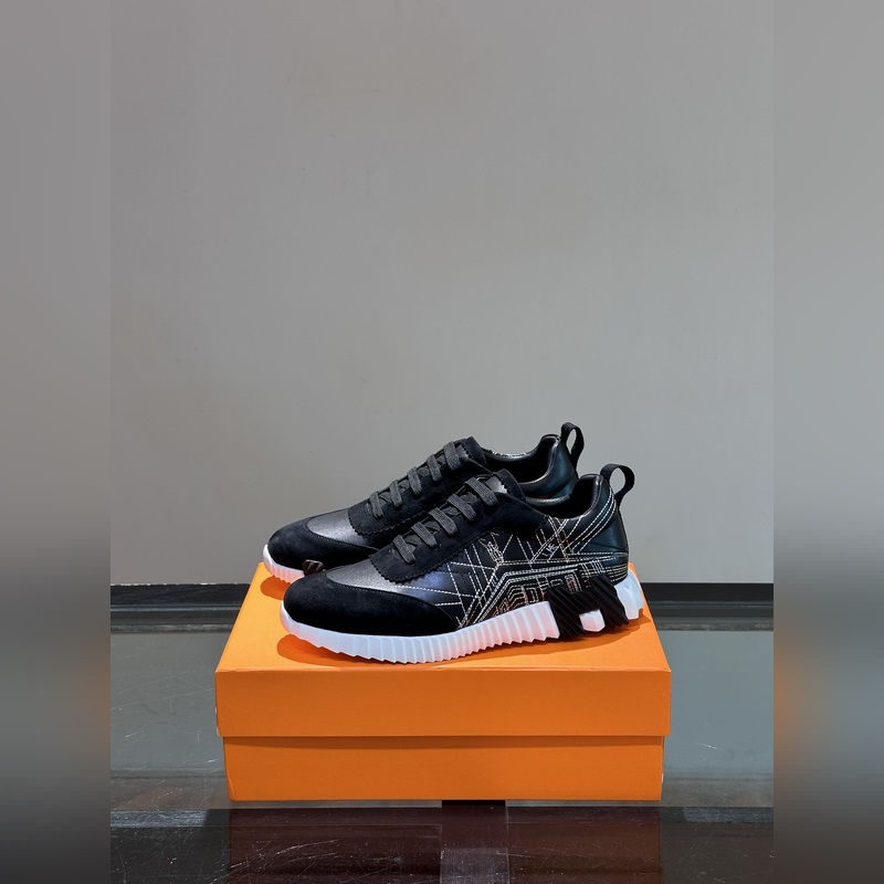 H Hermès Bouncing lenkkarit, miesten vapaa-ajan tennarit, ylempi vasikkanahka ja mokkavuohen ompeleet, tuontimateriaalit, täynnä tekstuuria, kevyt pohja, koristeltu kontrastisilla kuvioilla, luoden monipuolisen muotityylin. Koko: 38-44 (45,46 mittatilaustyönä)