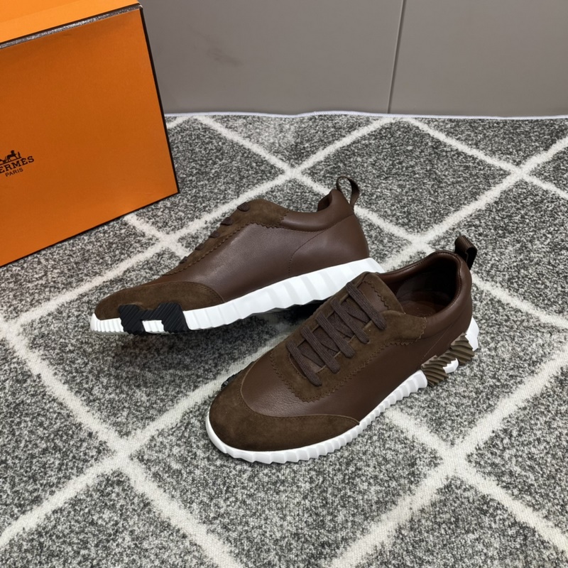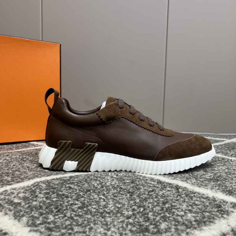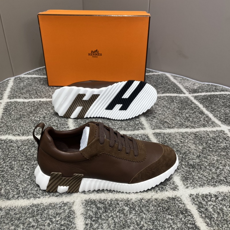Hermès Bouncing lenkkarit, miesten vapaa-ajan lenkkarit, päällinen nahkaa ommeltava huippuluokan verkkokangas, tuontimateriaalit, täynnä tekstuuria, kevyt pohja, joka on koristeltu kontrastisilla kuvioilla, luoden monipuolisen muotityylin. Koko: 38-45