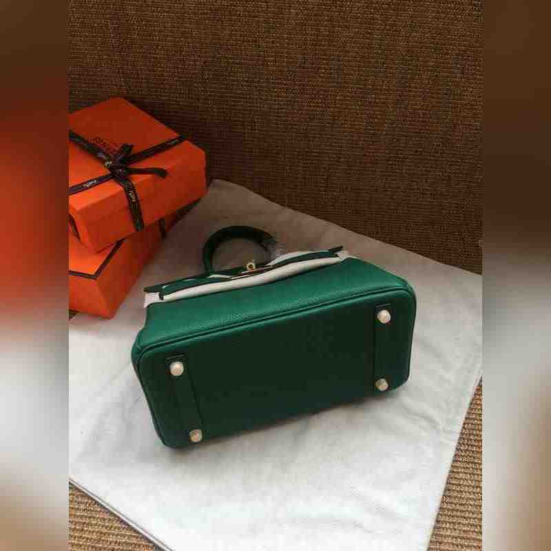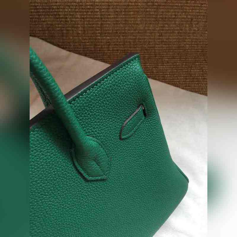 Hermes Platinum 25, 30 käsilaukku riikinkukonvihreä kulta- ja hopeasolki