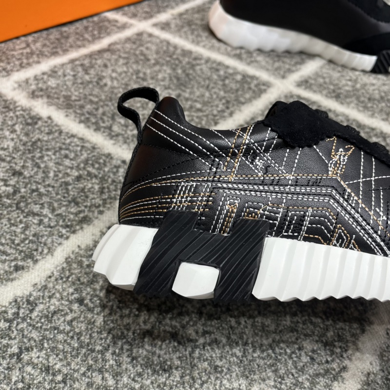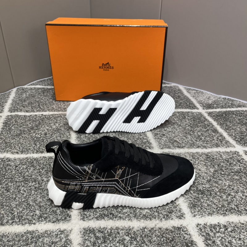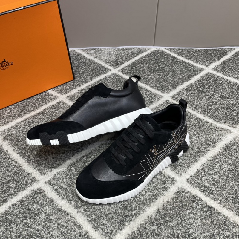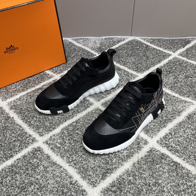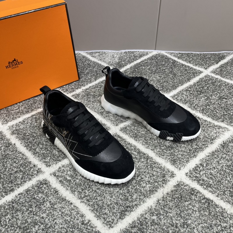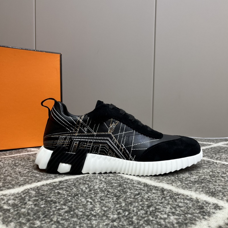 Hermès Bouncing lenkkarit, miesten vapaa-ajan lenkkarit, päällinen nahkaa ommeltava huippuluokan verkkokangas, tuontimateriaalit, täynnä tekstuuria, kevyt pohja, joka on koristeltu kontrastisilla kuvioilla, luoden monipuolisen muotityylin. Koko: 38-45