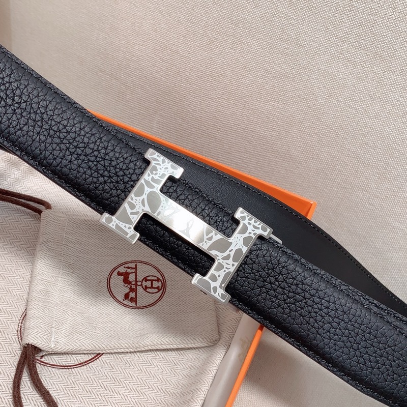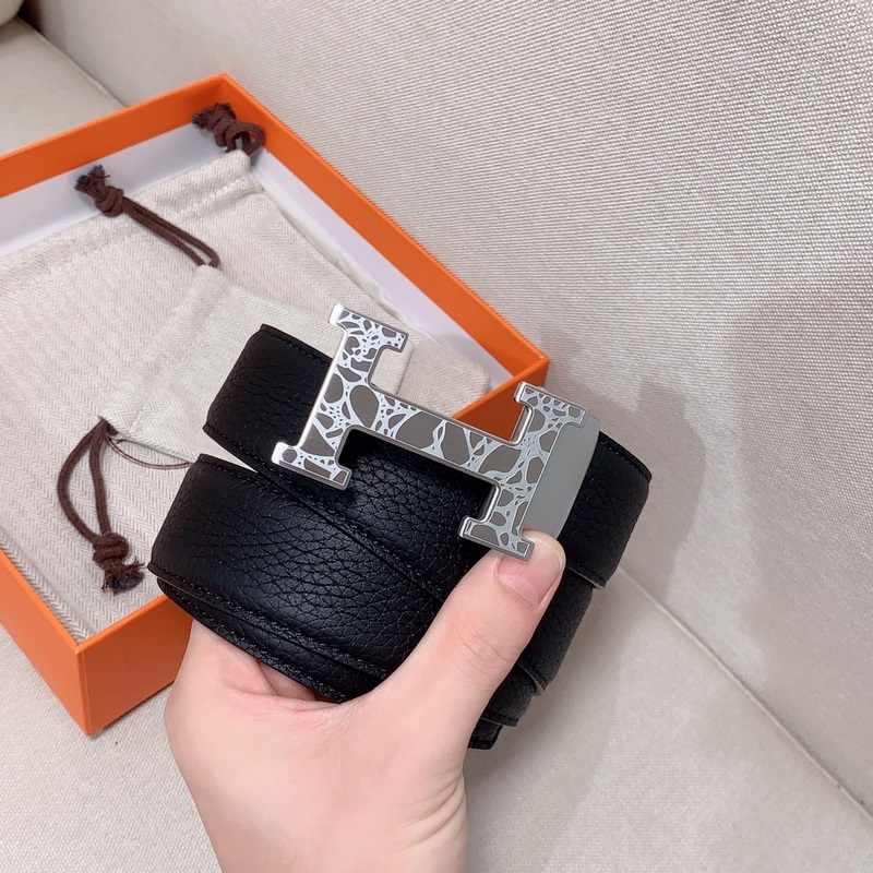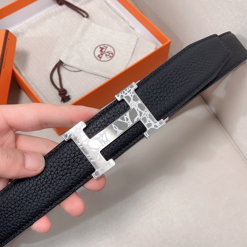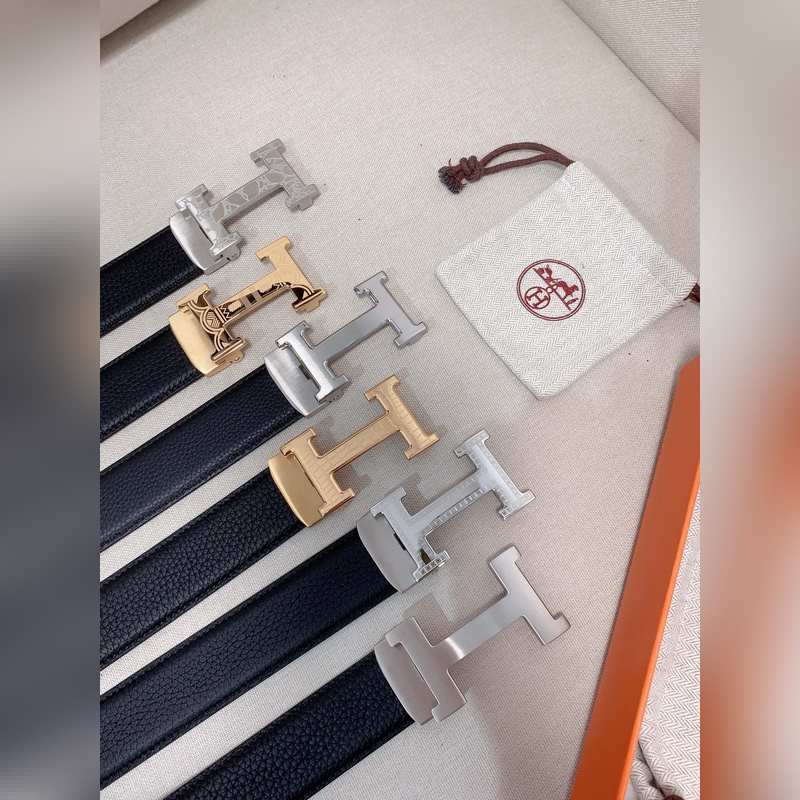 Hermès Automatic Clemence vasikkanahkainen miesten vyö, jossa palladiumpinnoitettu solki ja H-yksityiskohta 3,5 cm,