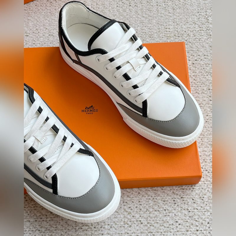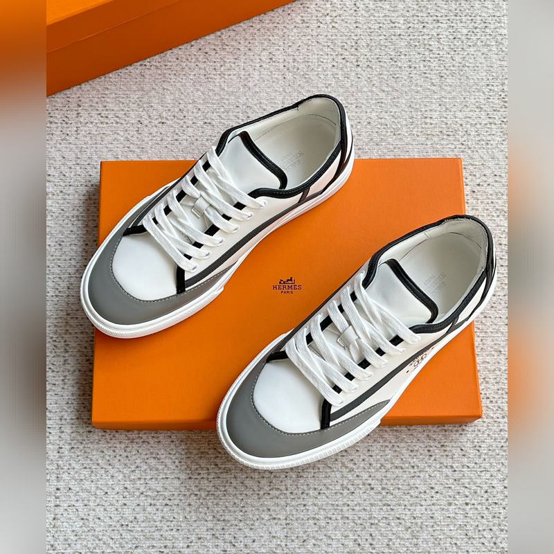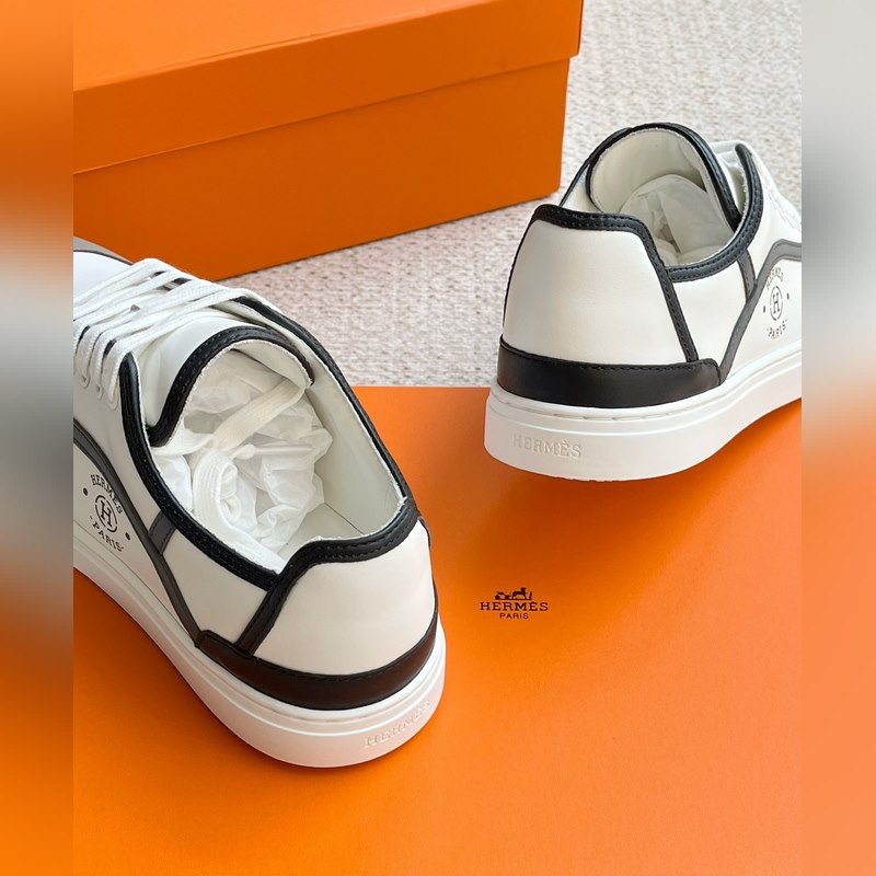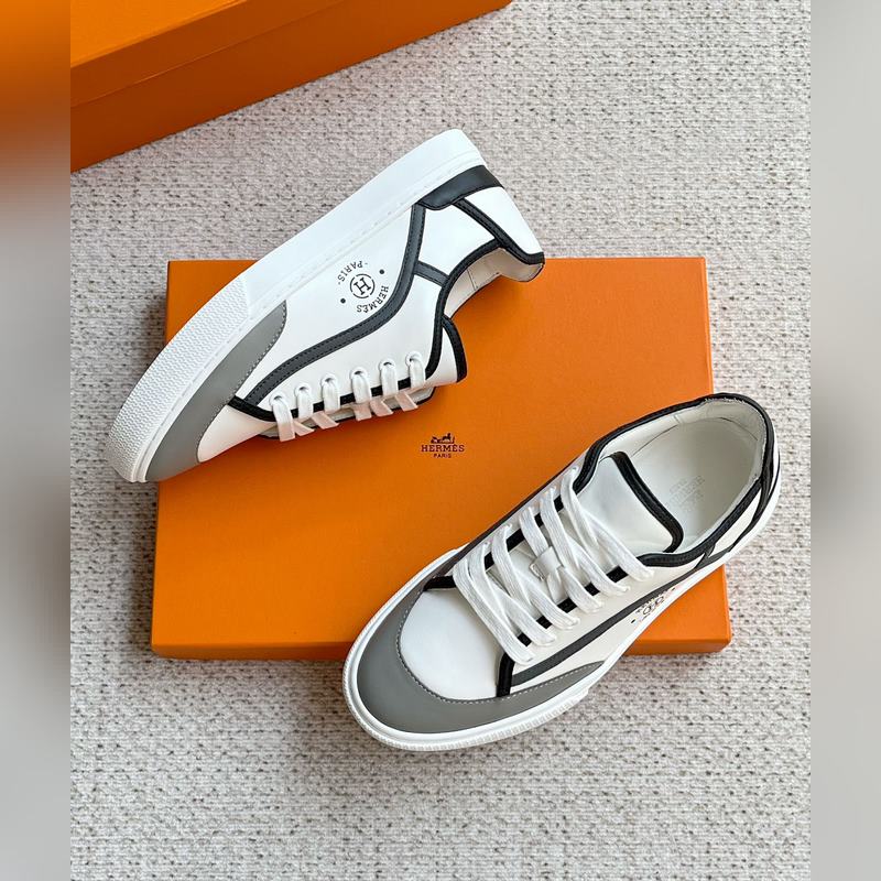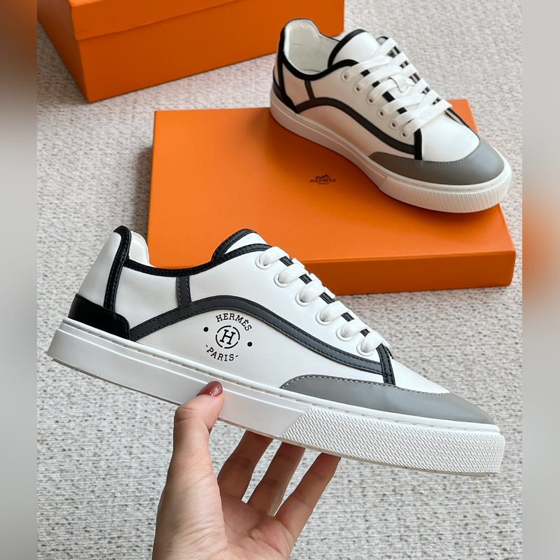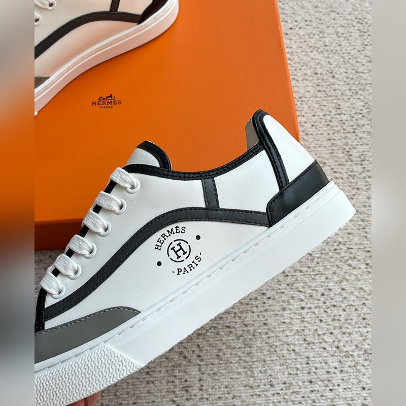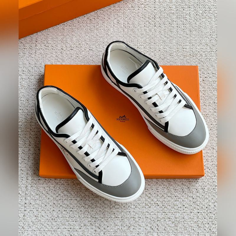 Uudet miesten HERMES Muodikkaat lehmännahkaiset nauhalliset lenkkarit ja lenkkitossut. Julkaistu samanaikaisesti virallisella verkkosivustolla. Kengän kyljessä logopainattu nauhallinen rento urheilutyyli, lehmännahkaiset pehmusteet, valkoinen kumipohja, klassinen ja rento tyyli, alkuperäisellä pakkauslaatikolla