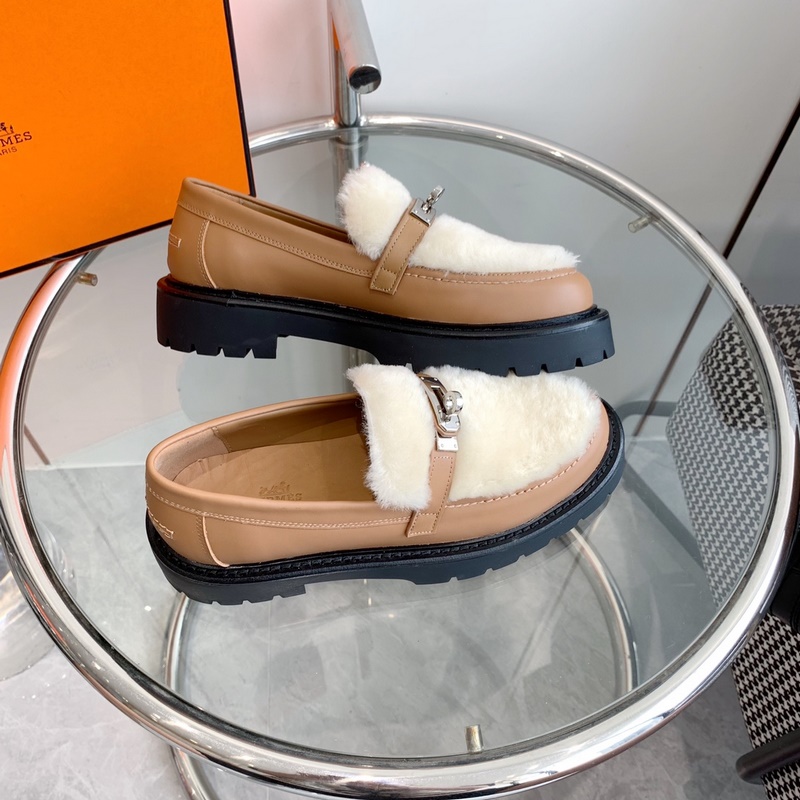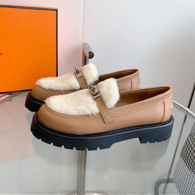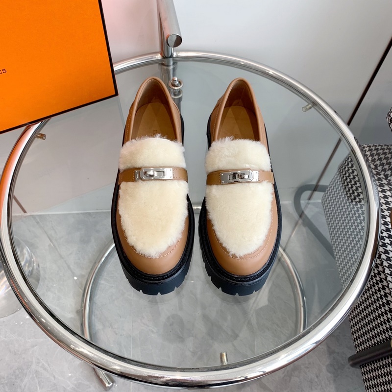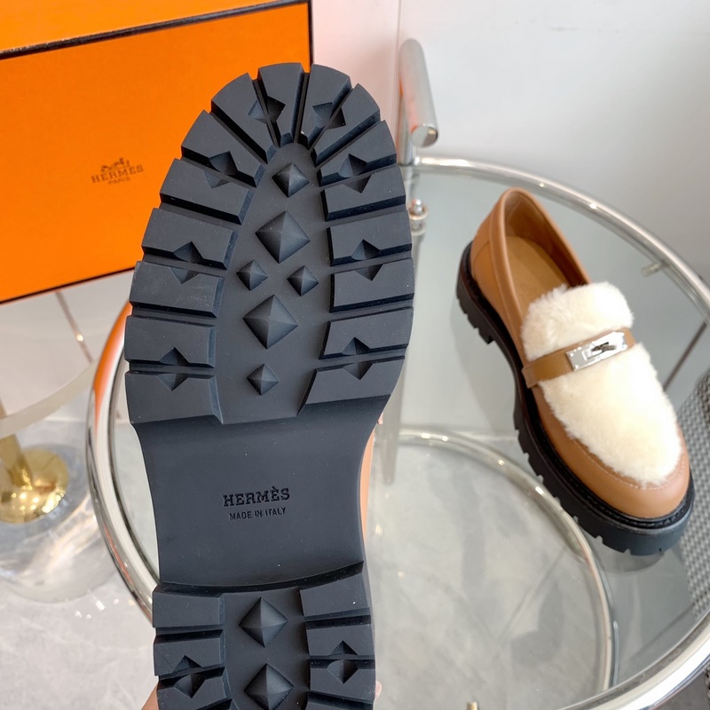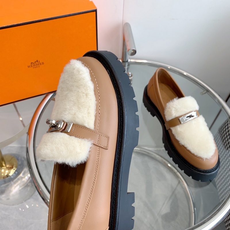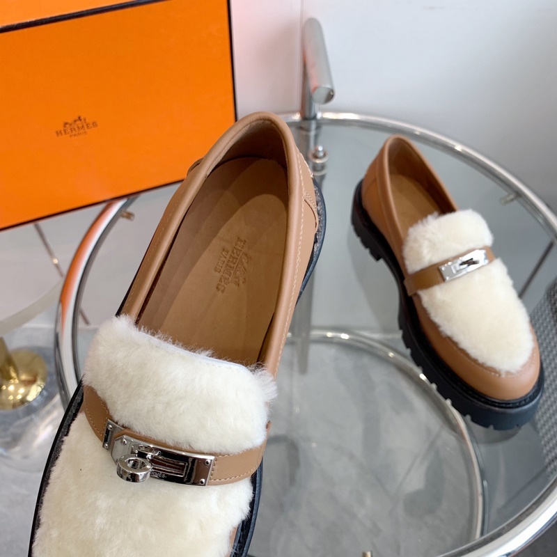 Hermes Icone Kelly -solki, paksupohjainen loafers Laadukas vasikannahka ja lampaannahka